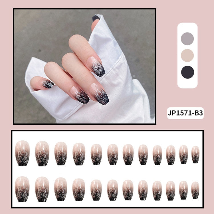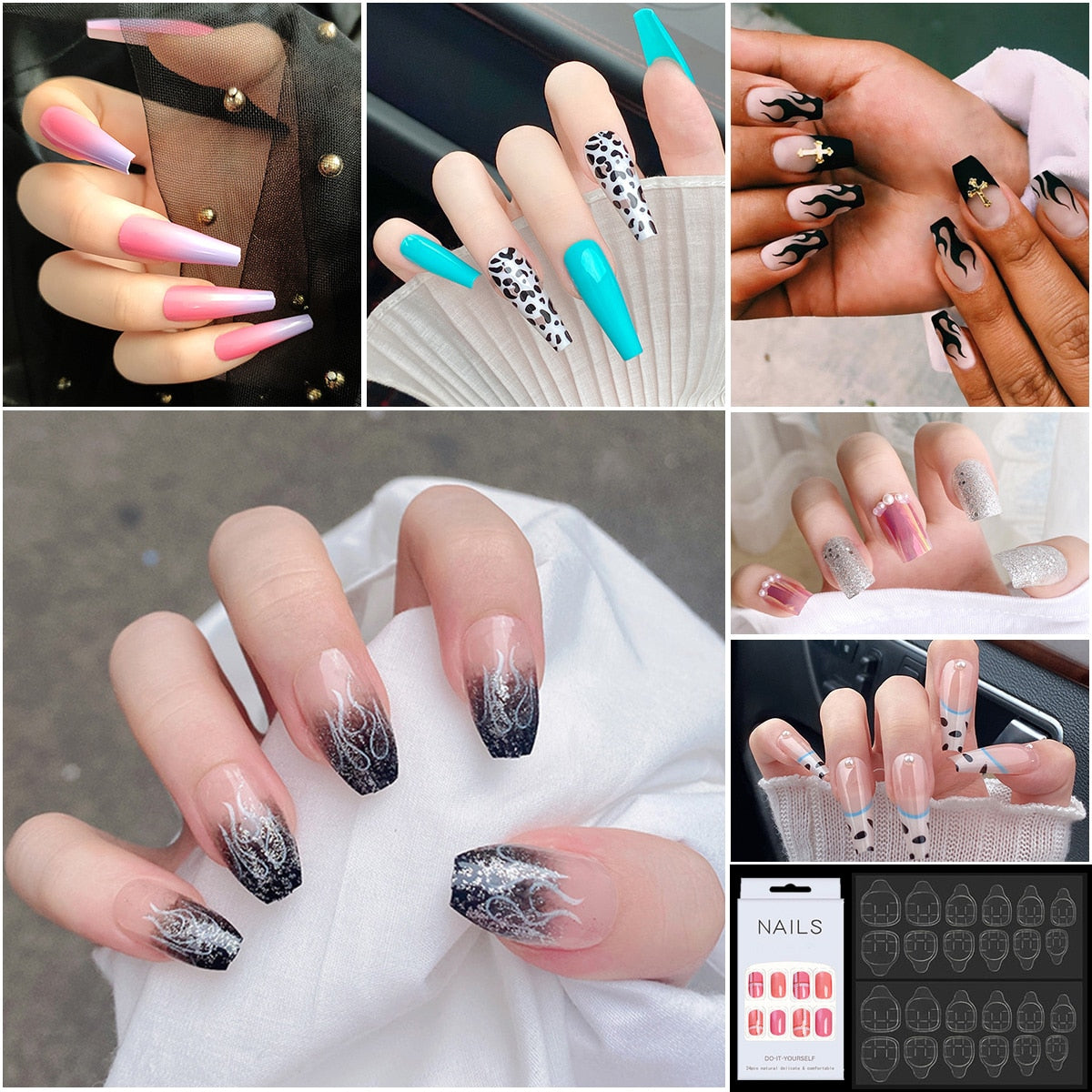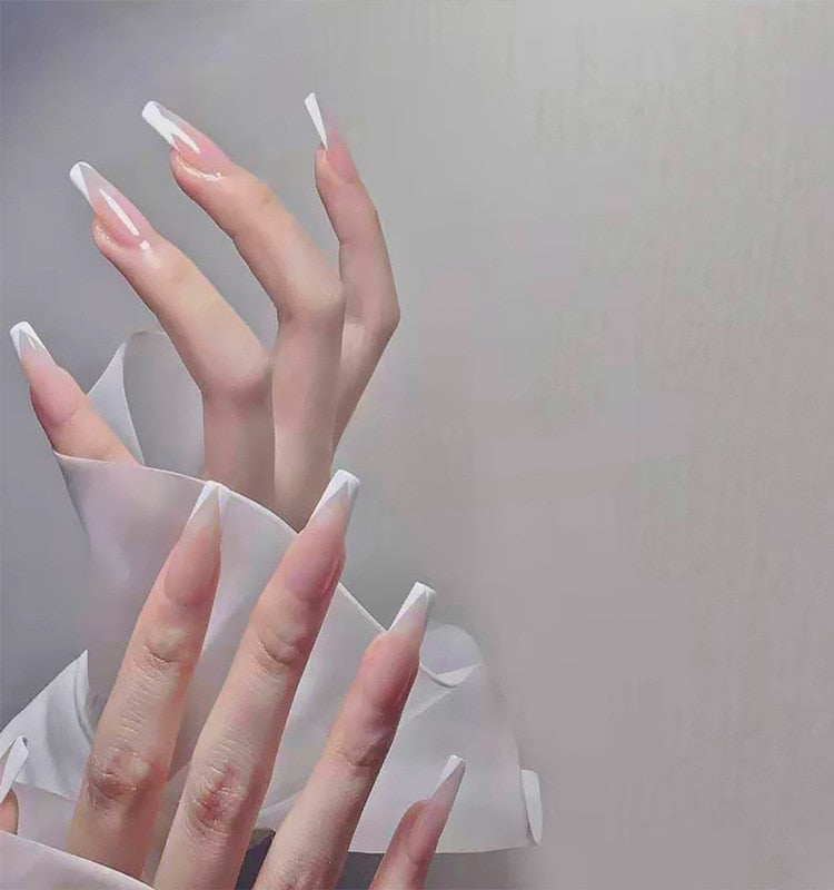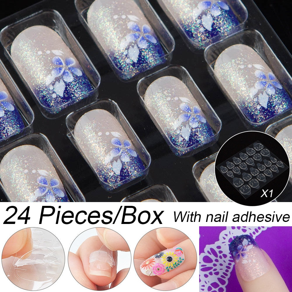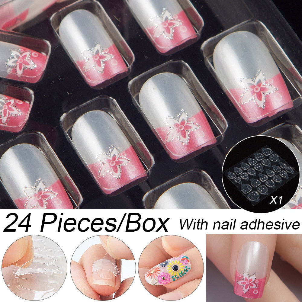 Fashion 24pc/set 10 Sizes Fake Nails Full Cover French False Nail Tips With Double-Sided Nail Adhesive Tab Press On Nails Art-Nail Inspo