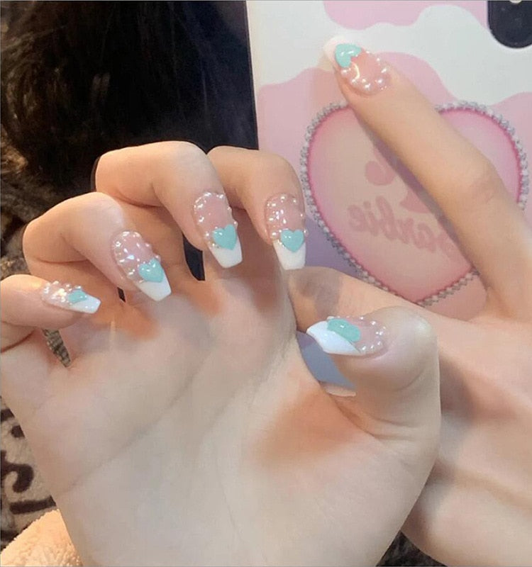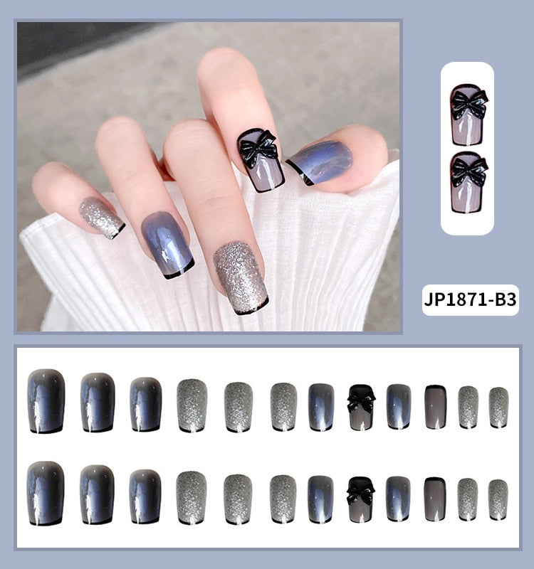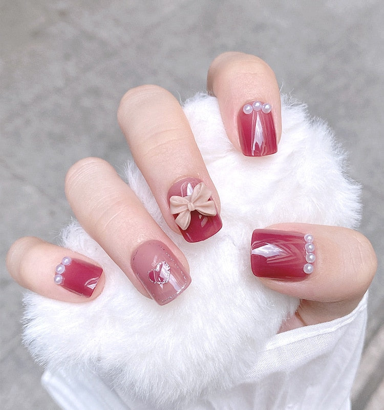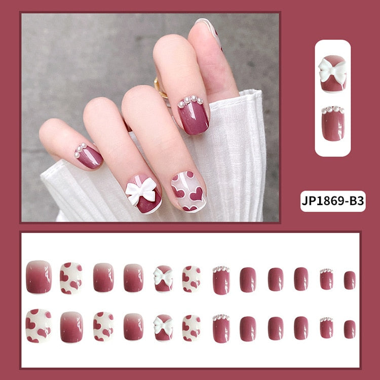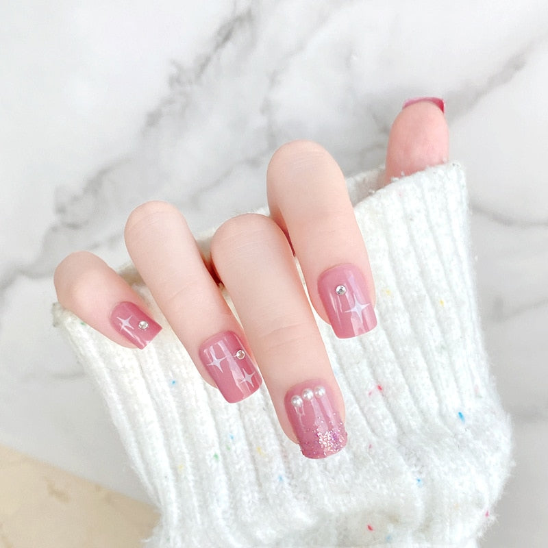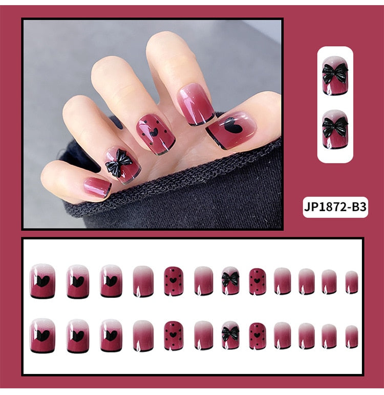 Looks cute on my nails. I had to adjust them according to my nail sizes. The glue fixed them tightly to the nail so far( the second day yet). I applied some top coat for extra shine.