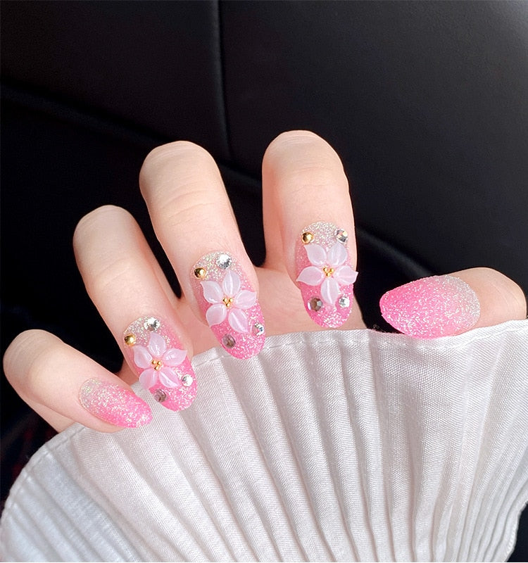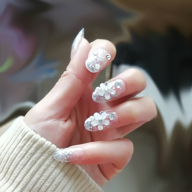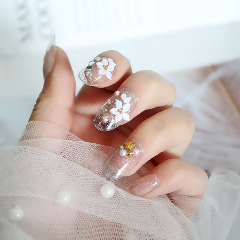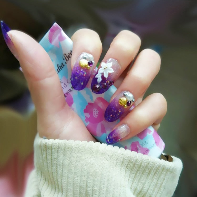 - Choose a suitable size of adhesive stickers or nail glue for your nails and stick it on your nails.