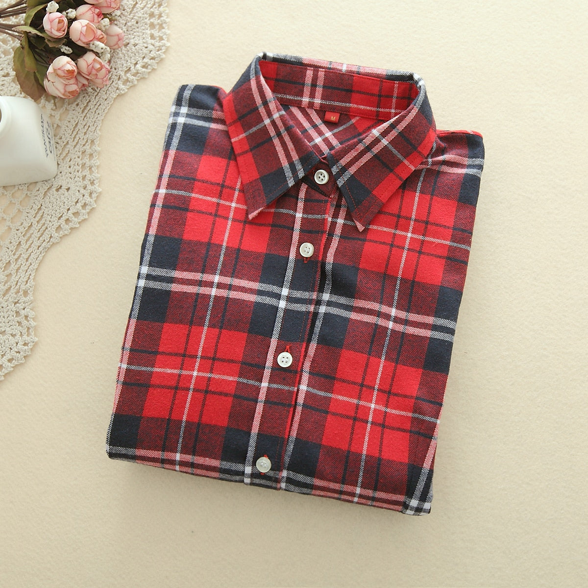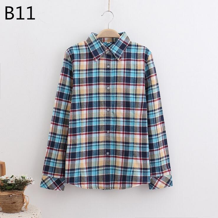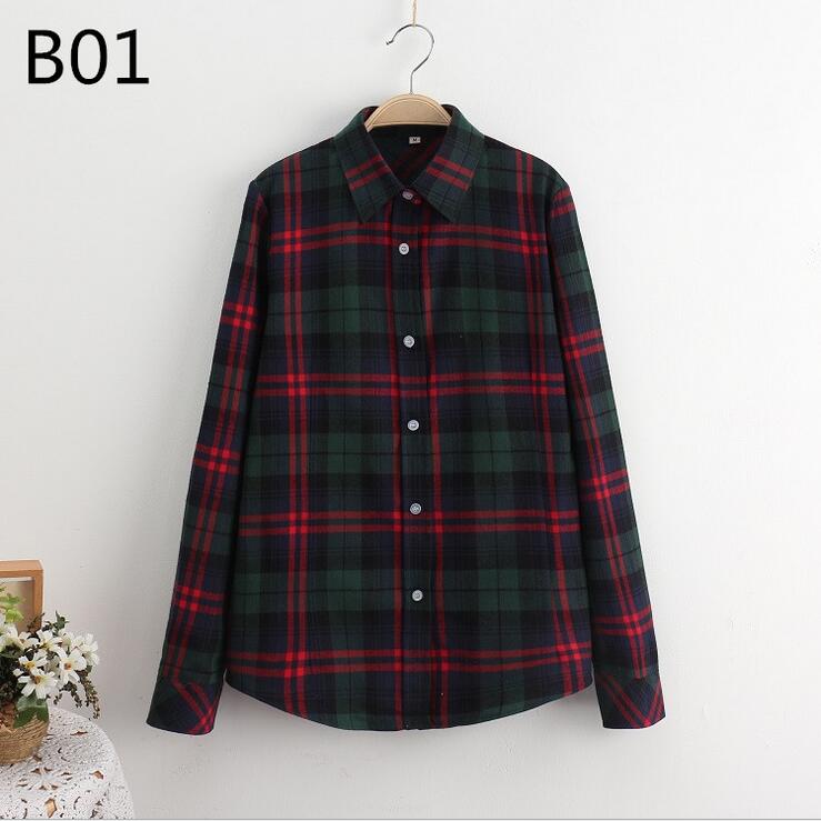 Fashion Plaid Shirt Female College Style Women's Blouses Long Sleeve Flannel Shirt Cotton Blusas Office Tops