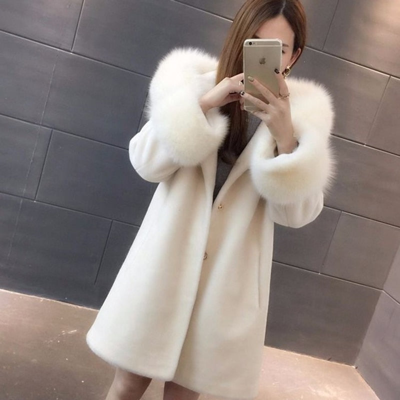 Fashion Winter New Hooded Sheep Sheared Fur Coat Wool Coat Women's Medium And Long Imitation Fox Hair Thickened Korean Slim Fit