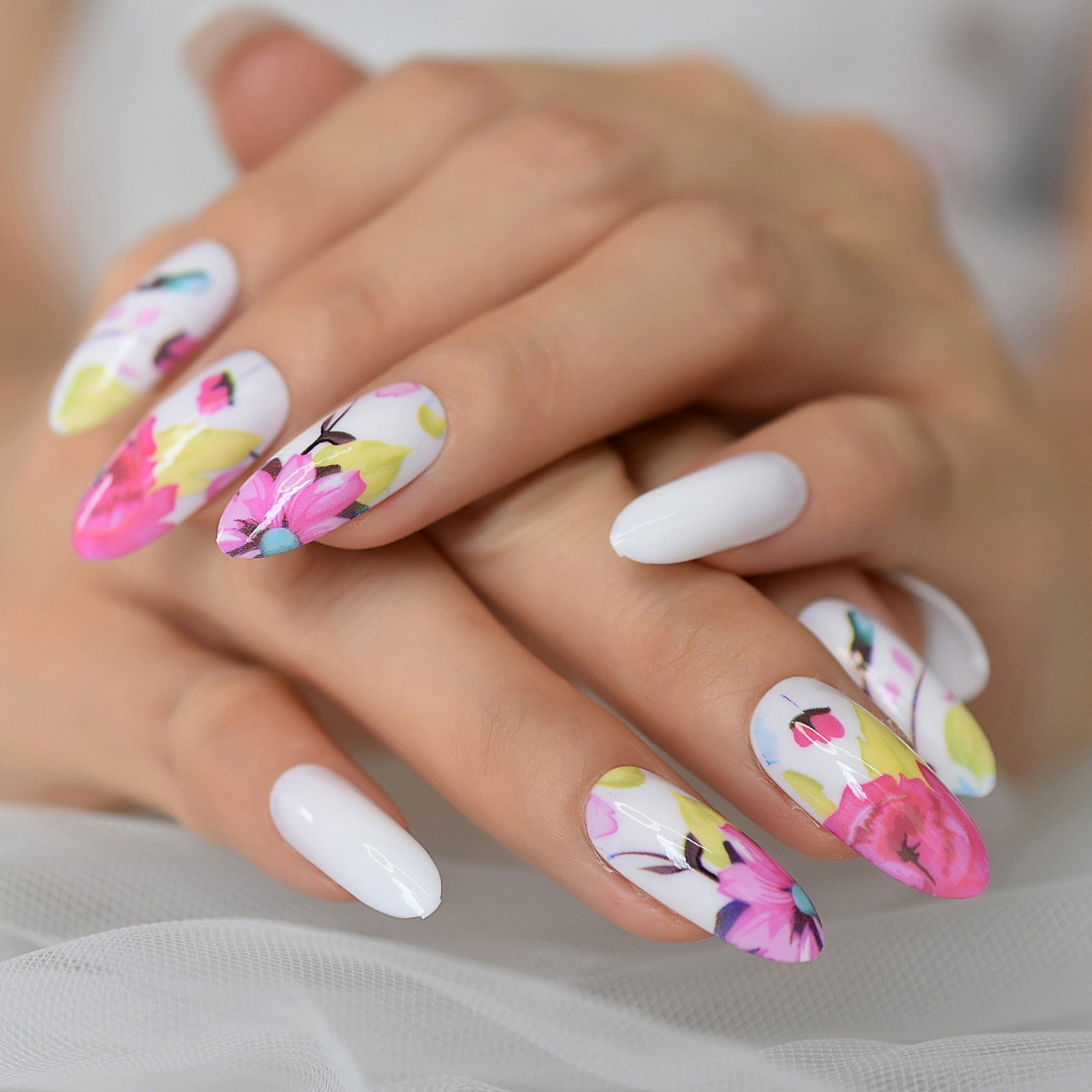 Flower Pattern Extra Long Fingernails With Original Design Press On Nails Almond Sharp Gels Nails Supplying Charms Cute EchiQ-Nail Inspo