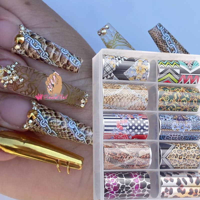 Foil Nail Art Transfer Sticker Decals Animal Crocodile Print Luxury Acrylic Nails Design Manicure Decorations-Nail Inspo