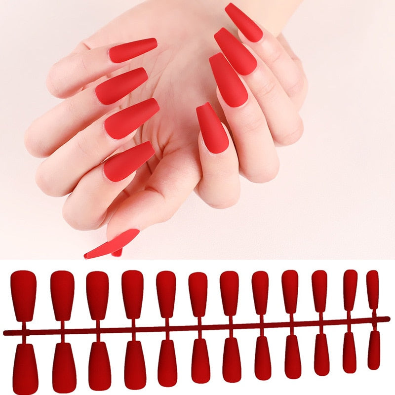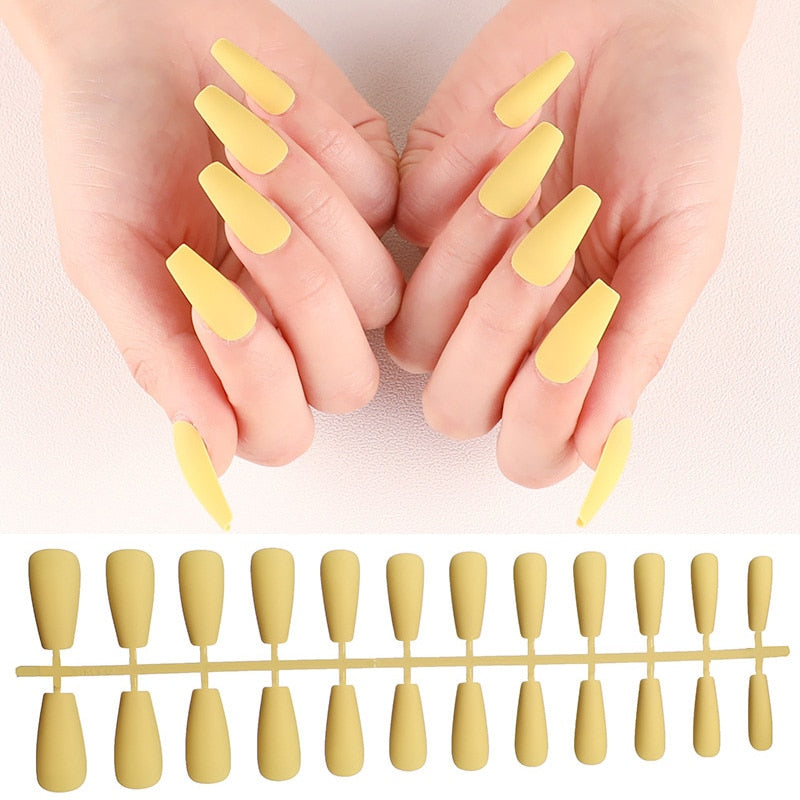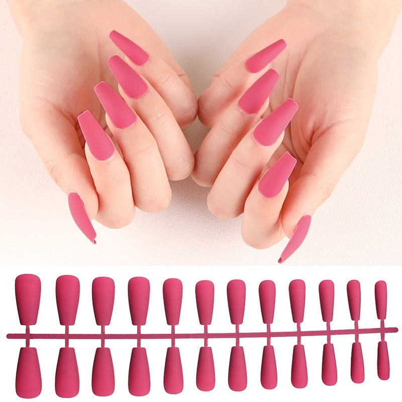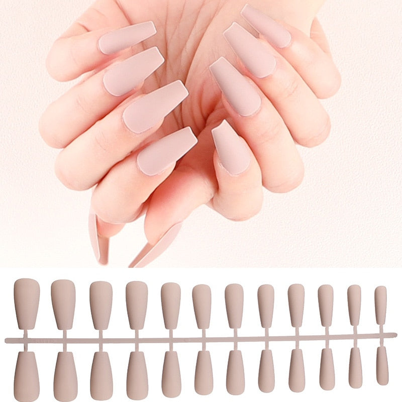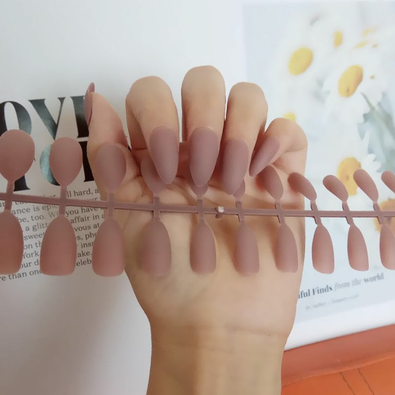 Free shipping fake nails Nail Art Decorations 24pcs Fake Nails Solid Color Frosted Matte Full Cover новогодние накладные ногти-Nail Inspo