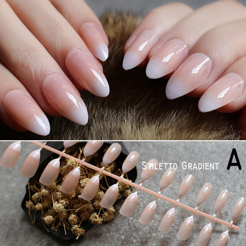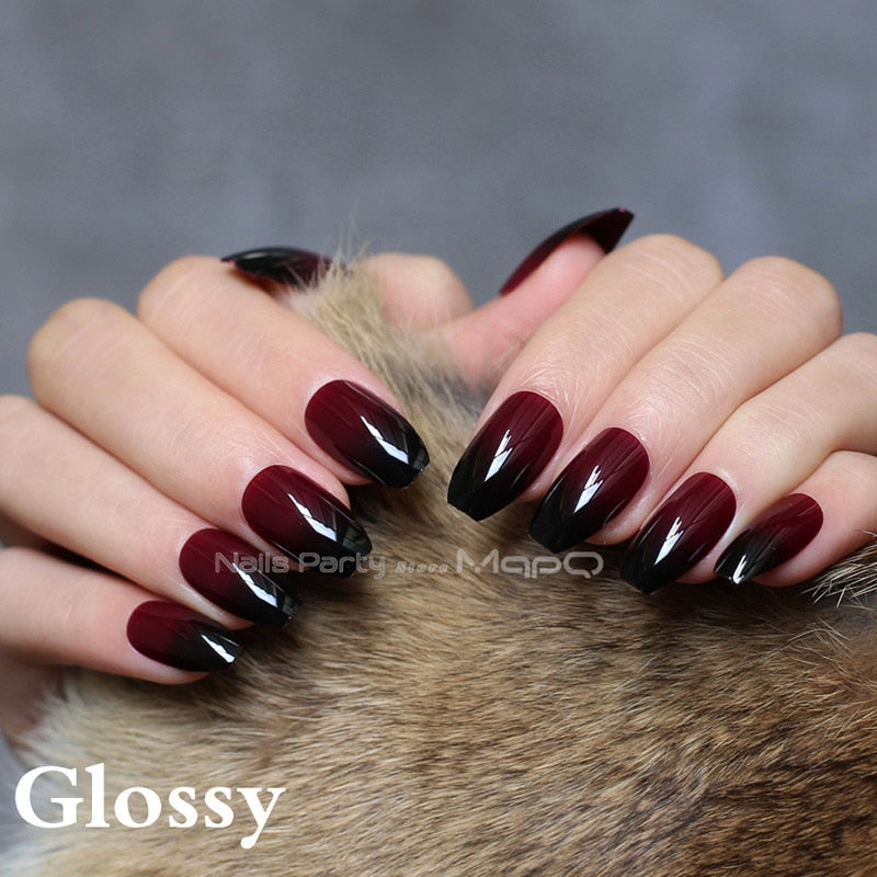 French gradient stiletto Natural nails coffin Nude medium short Square fake nails red black oval False nails Ballerina-Nail Inspo