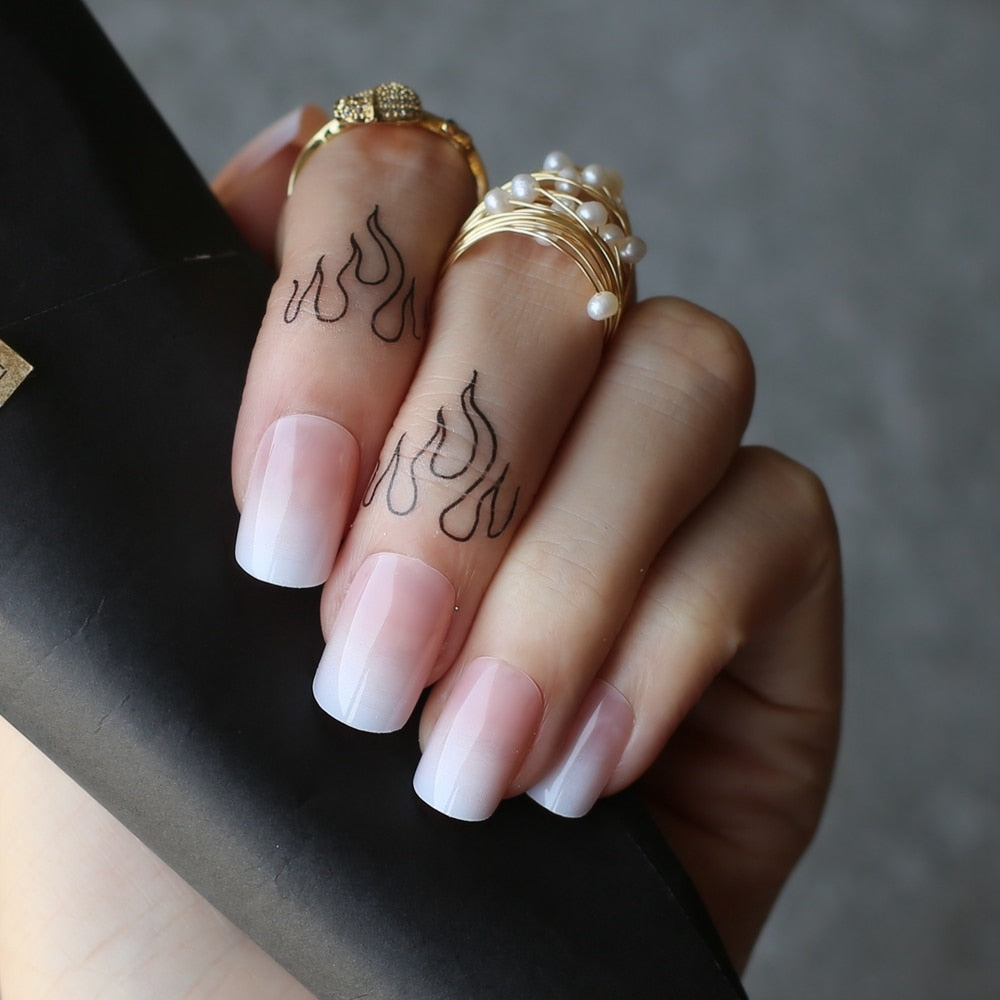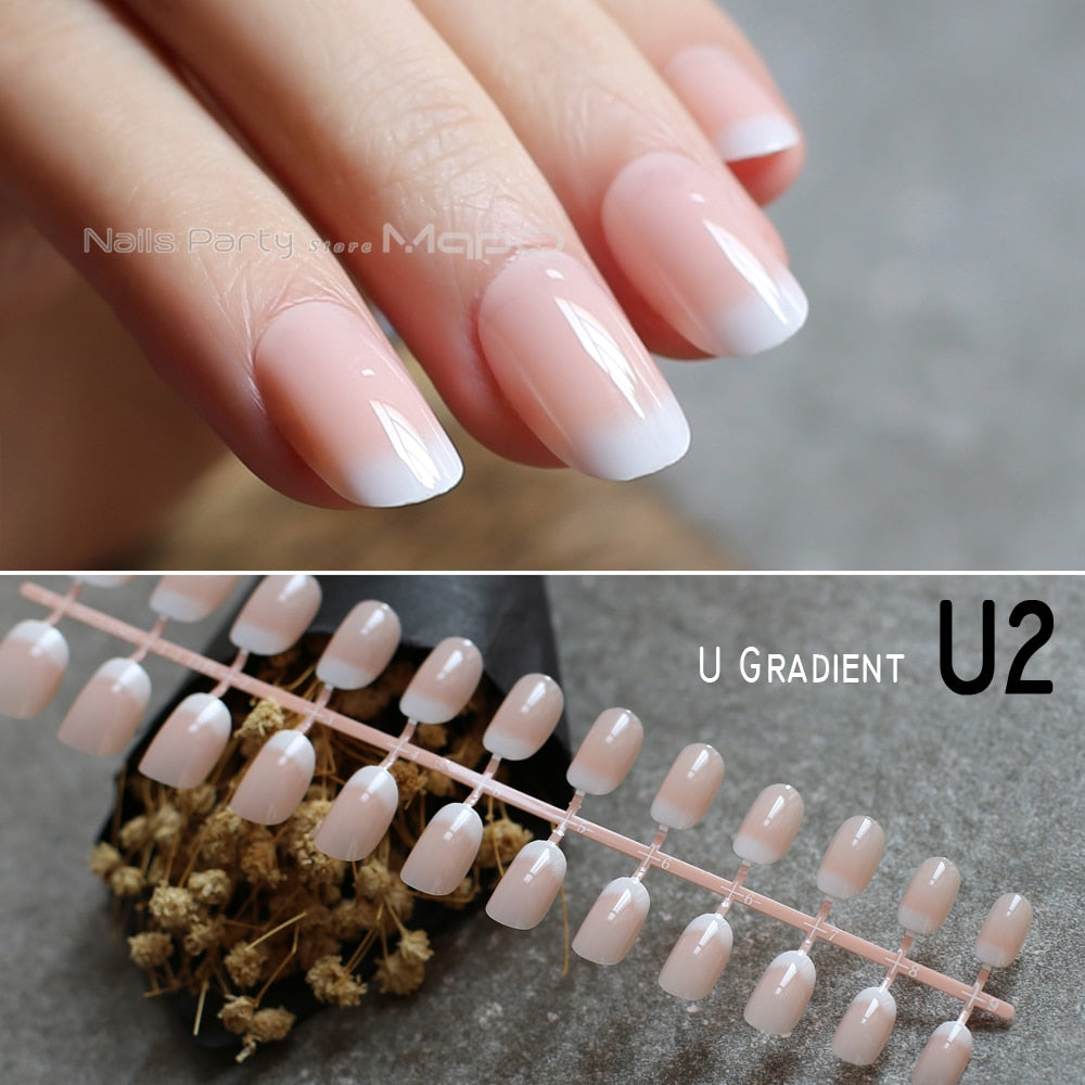 French Ombre False nails Short Square 24pcs/set Ladies decoration design Nude Fake nails Natural Acrylic nails-Nail Inspo