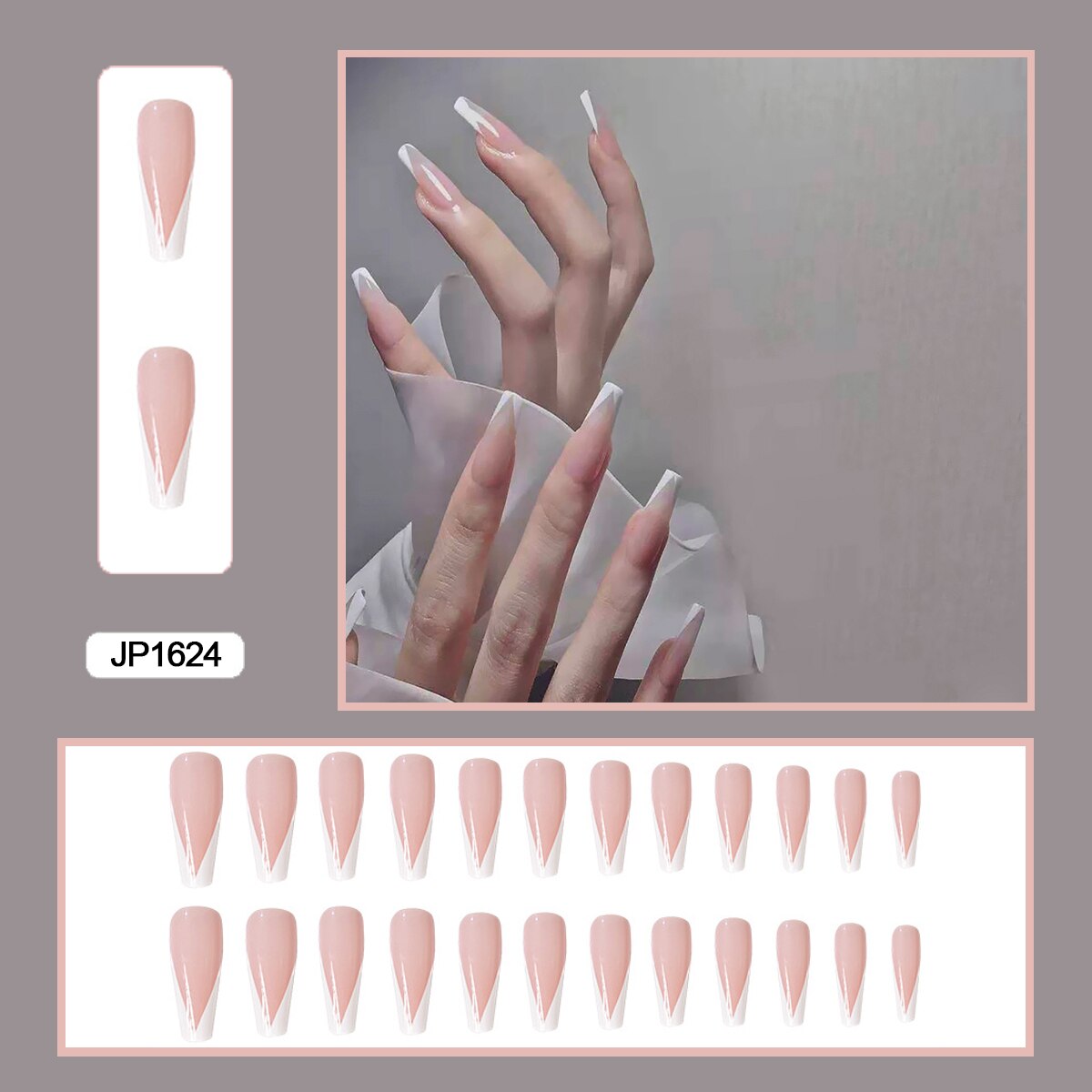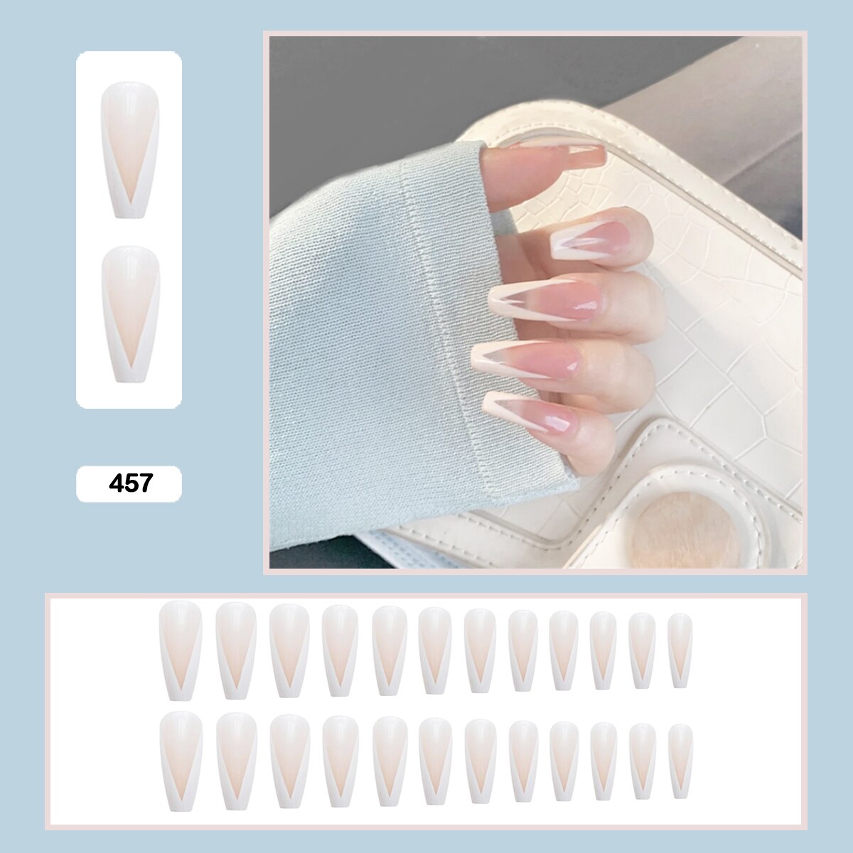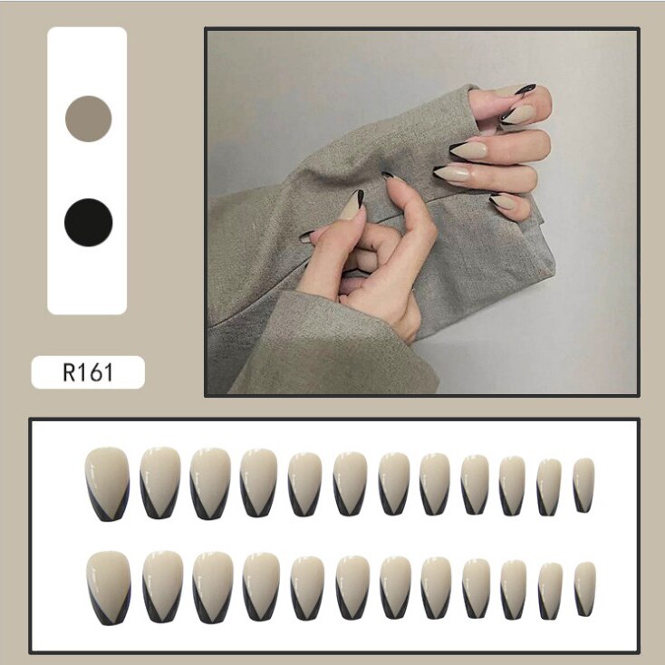 French V Simplicity Elegant Trapezoidal Wearable Fake Nails-Nail Inspo
