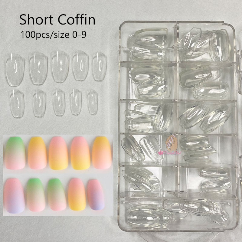Full Cover Short Square Coffin False Nail Tips Acrylic Press on Fake Tips Clear UV Gel Extension Manicure Tool Detachable Finger-Nail Inspo