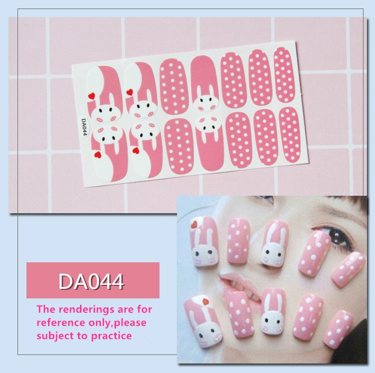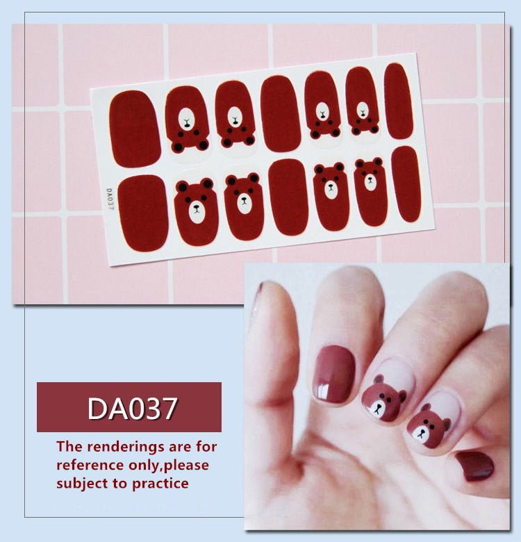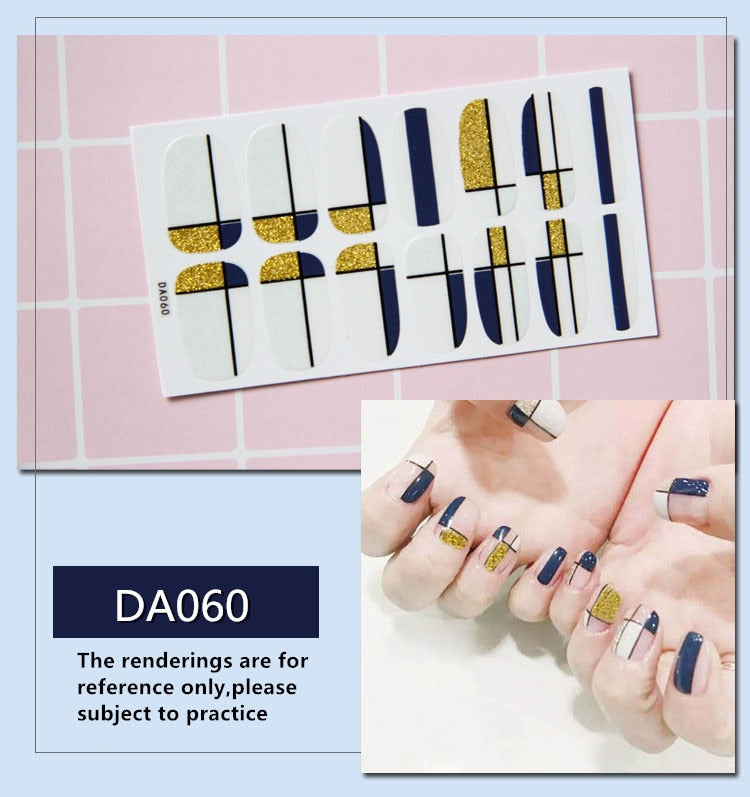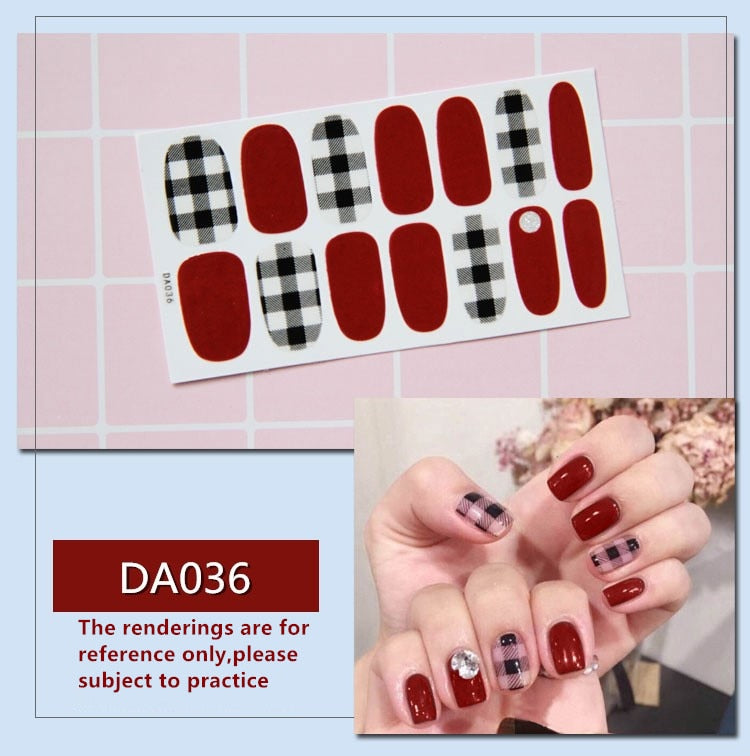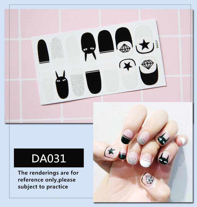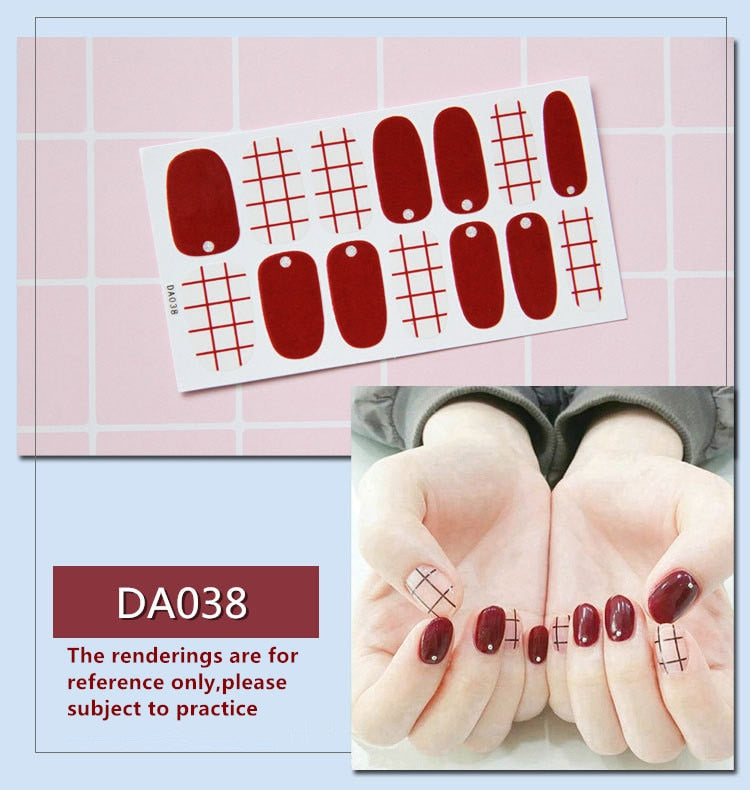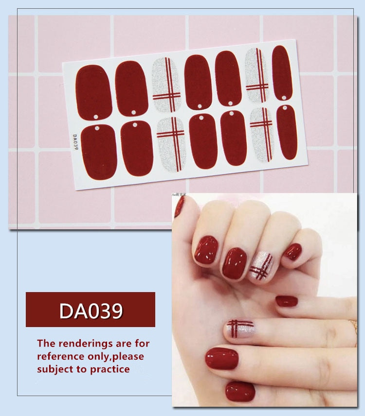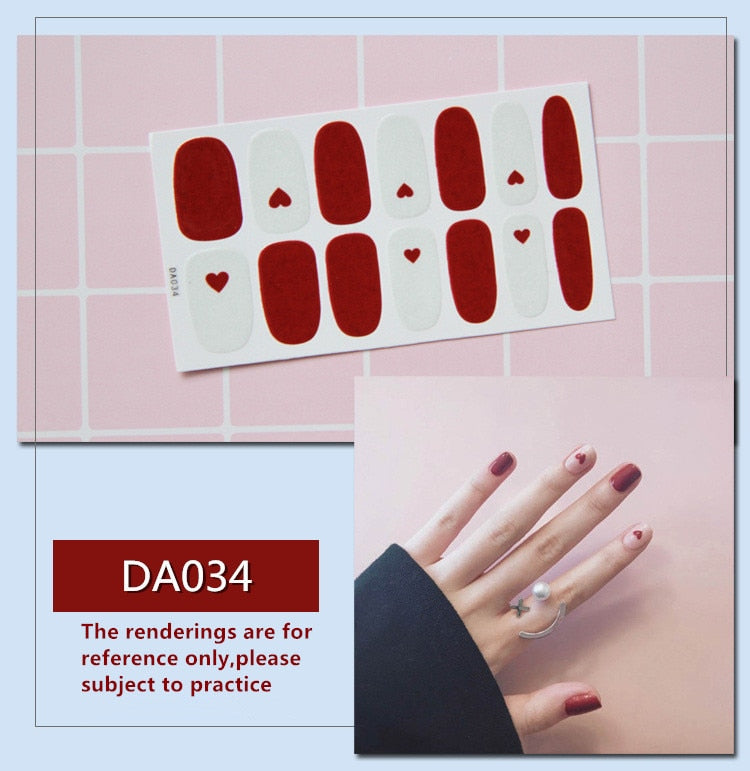 Full Cover Wraps Nail Polish Stickers Strips Plain Nail Art Decorations Heart Designs Glitter Powder Manicure Tips-Nail Inspo