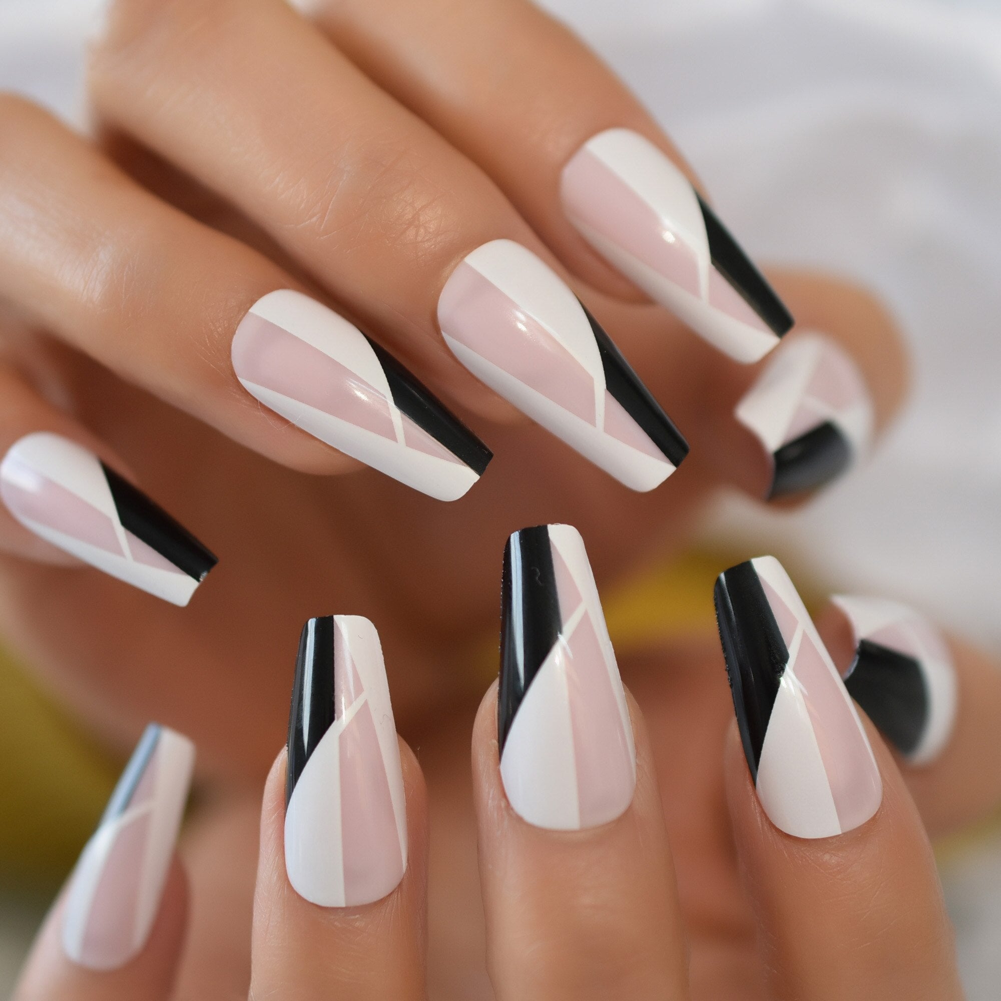 Full-covered Long Ballerina Nail Art Multi-color French False Nail Tips Set Fingernails Extension Tool-Nail Inspo