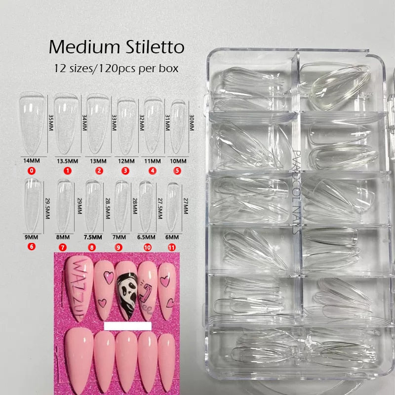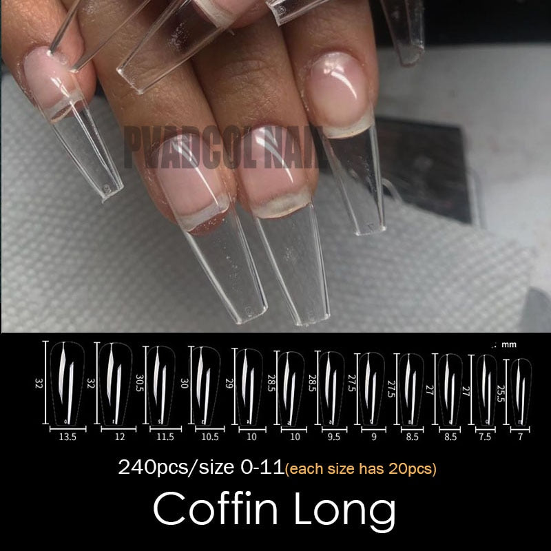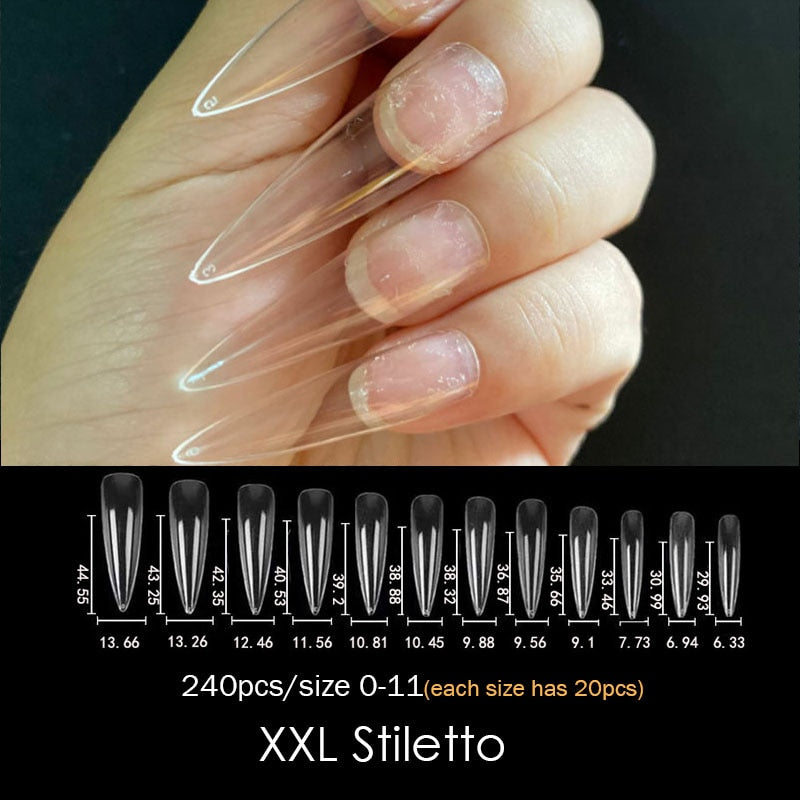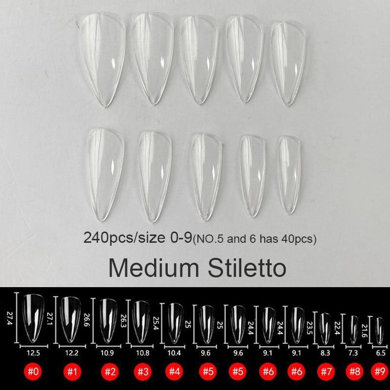 Gel Nails Extension System Full Cover Sculpted Clear Stiletto Coffin False Nail Tips 240pcs/bag-Nail Inspo