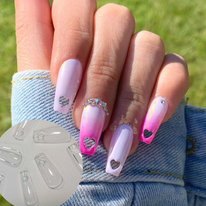 Gelly False Nail Tips Soft Gel Nails UV Gel Extension Building Tips Heart Shape Hollow Coffin Full Cover Toenail Tips Manicure-Nail Inspo