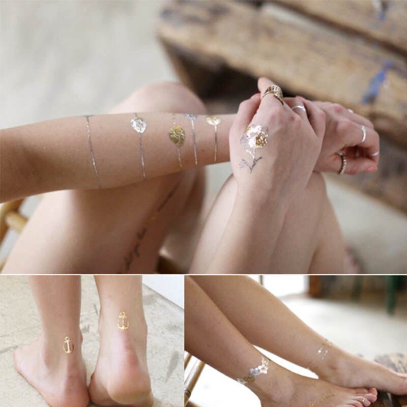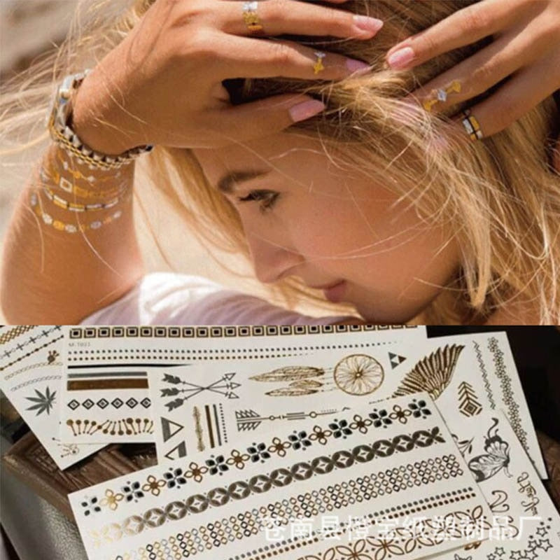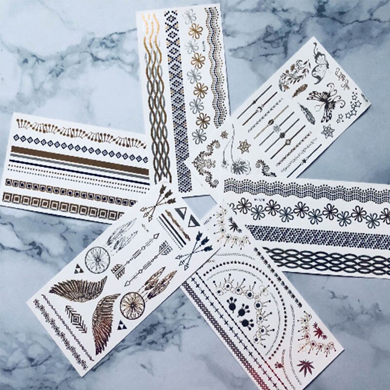 Geometric Shape  Metallic Waterproof Temporary Gold and SilverTattoo Stickers Mobile Phone Waterproof Shiny Bracelet Stickers