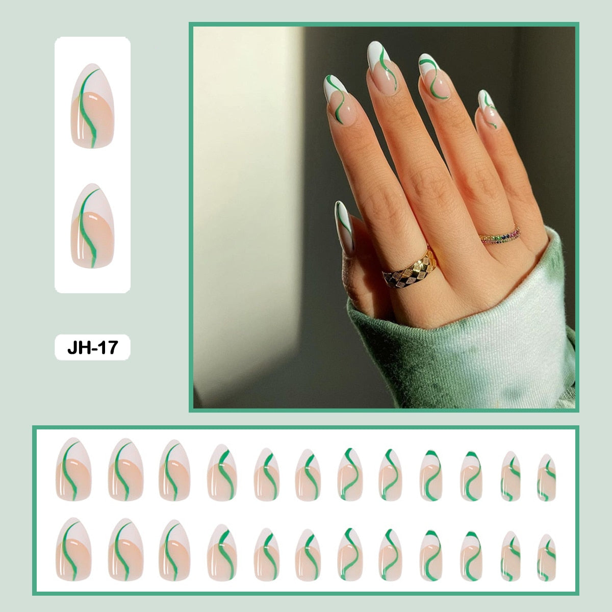 Geometric Simplicity Nails Art Wearable Fake Nail With Glue And Sticker Ellipse Short False Nails 24pcs/box With Wearing Tools-Nail Inspo