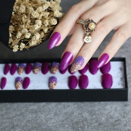 Glitter Stiletto red Ombre glitter fake nails blue full set Gradeint Black false nails matte Nude  purple Bright Handmade nails-Nail Inspo