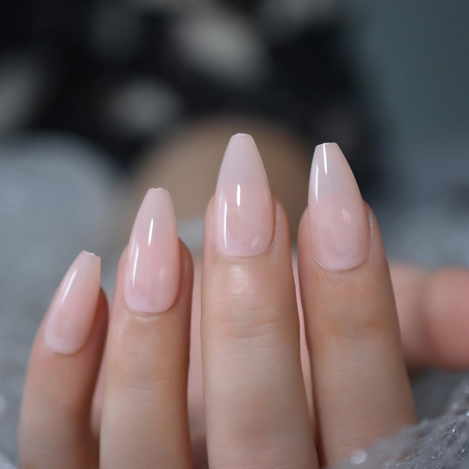 Glossy Gel Nude Pink Full Cover Press On False Nails Medium Coffin Ballet Solid Color Fake Nails Set Long Nail Tips-Nail Inspo