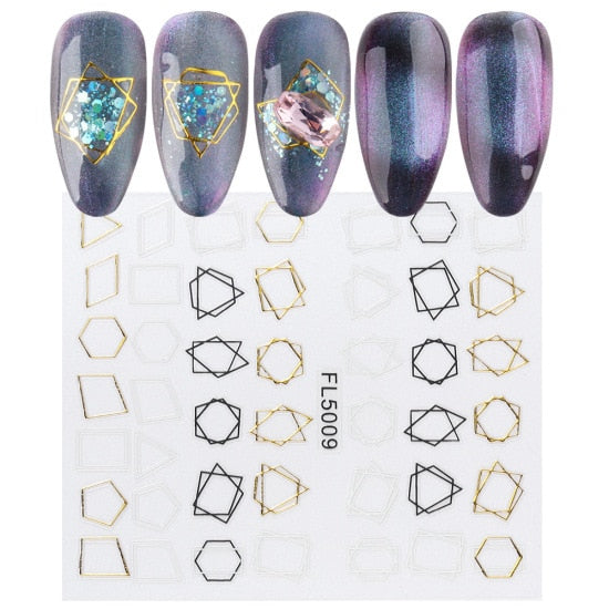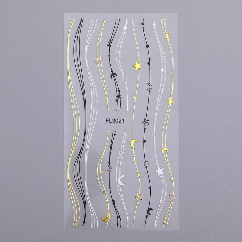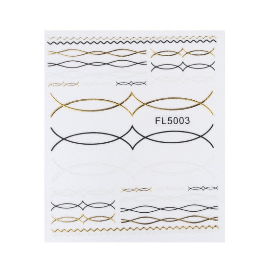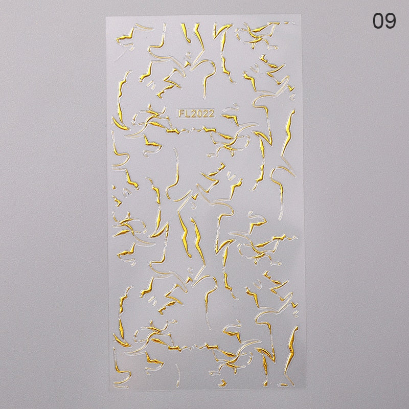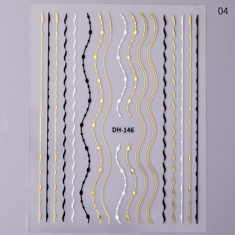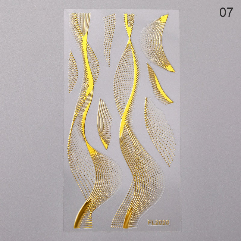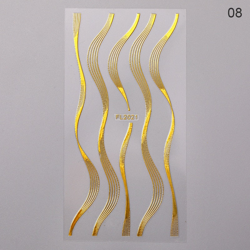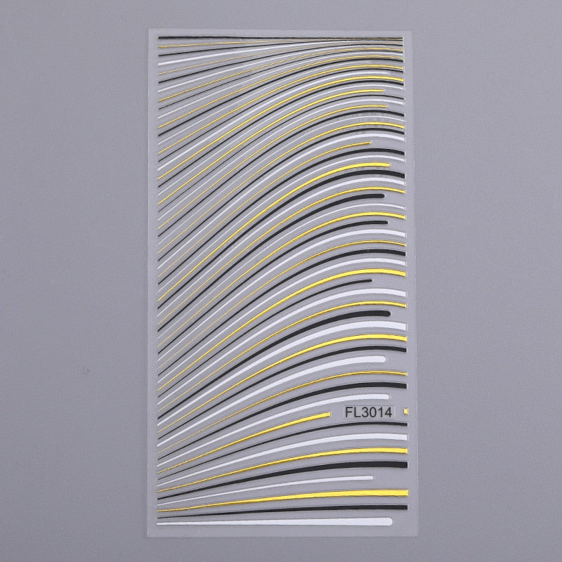 Gold 3D Nail Sticker Curve Stripe Lines Nails Stickers Gradient Adhesive Striping Tape Nail Foil Nail Art Stickers Decals Silver-Nail Inspo