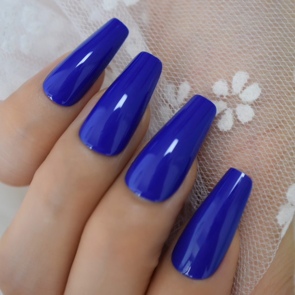 Gorgeous Diamond Blue Fake Nails Long Ballerina Shape Gelnails Thick Reusable Artificial Nail Art Tips 24-Nail Inspo