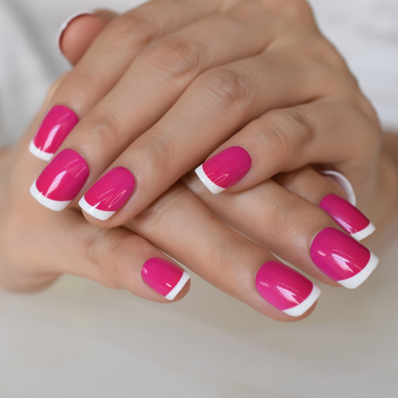 Gorgerous Fashion French Nail Rose Red White Tip Round Faux Ongles Short Lady Artificial Nail Art Tips for Daily Wear 24-Nail Inspo