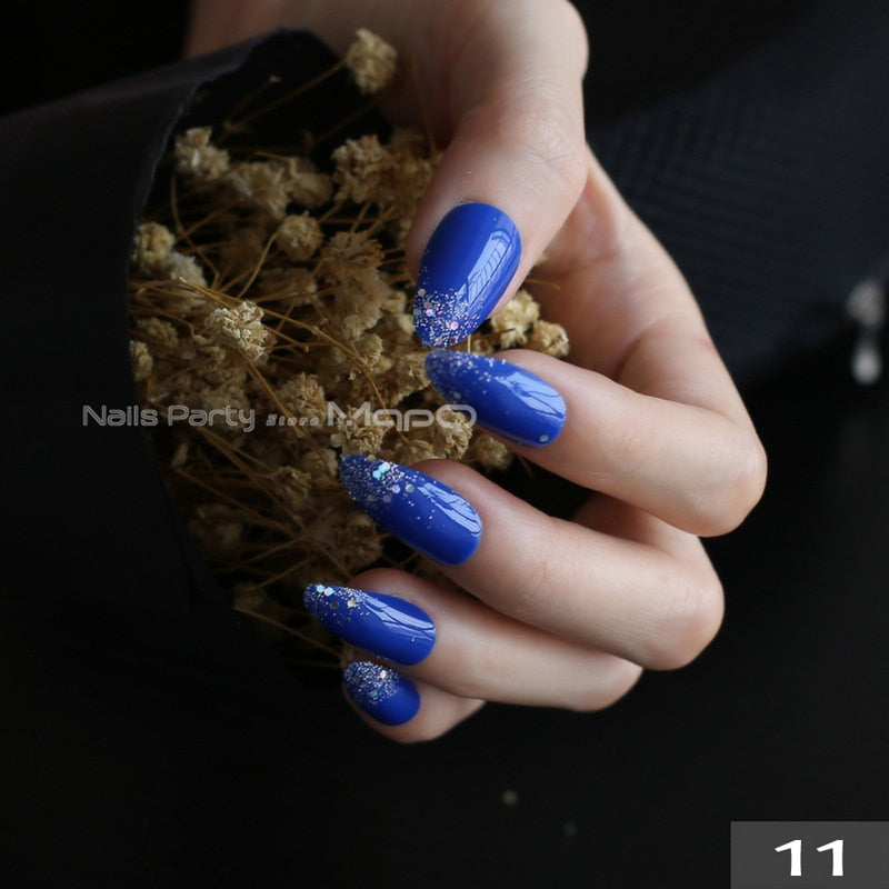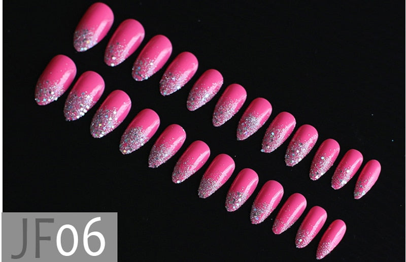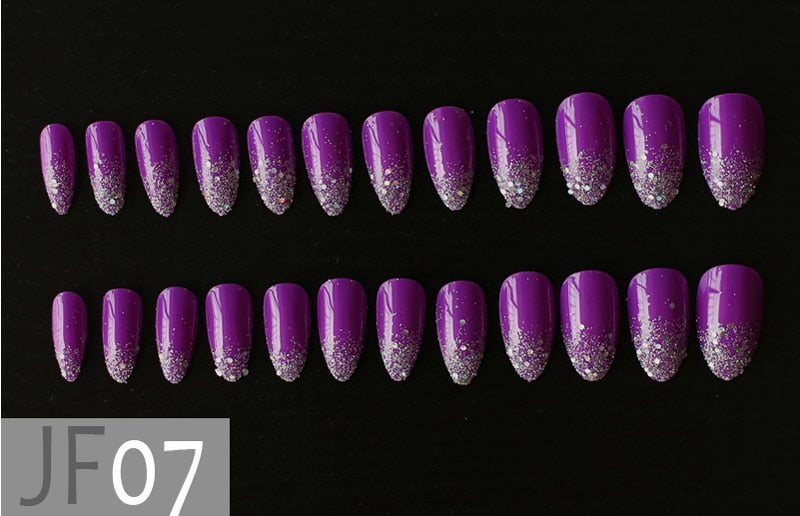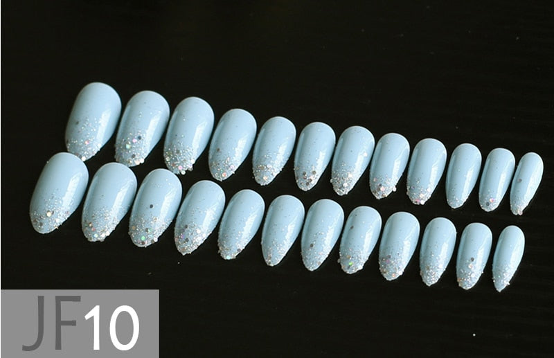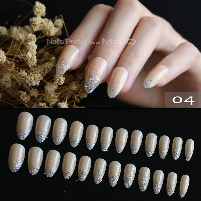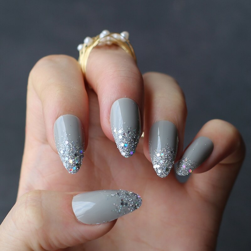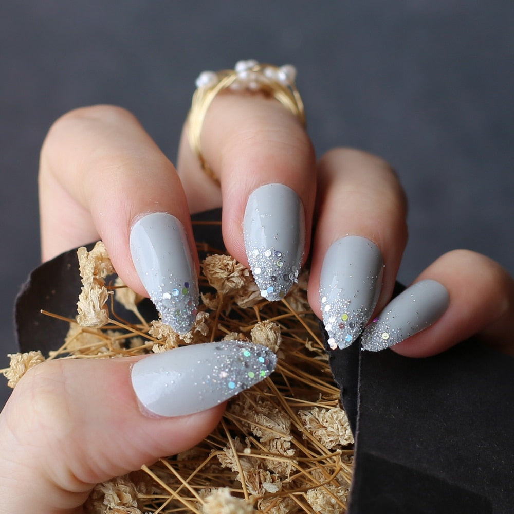 Gray Ombre French glitter AB Short Stiletto UV Gel nude Fake Nails Black Shimmer Finger red false nail point tip pink Handmade-Nail Inspo