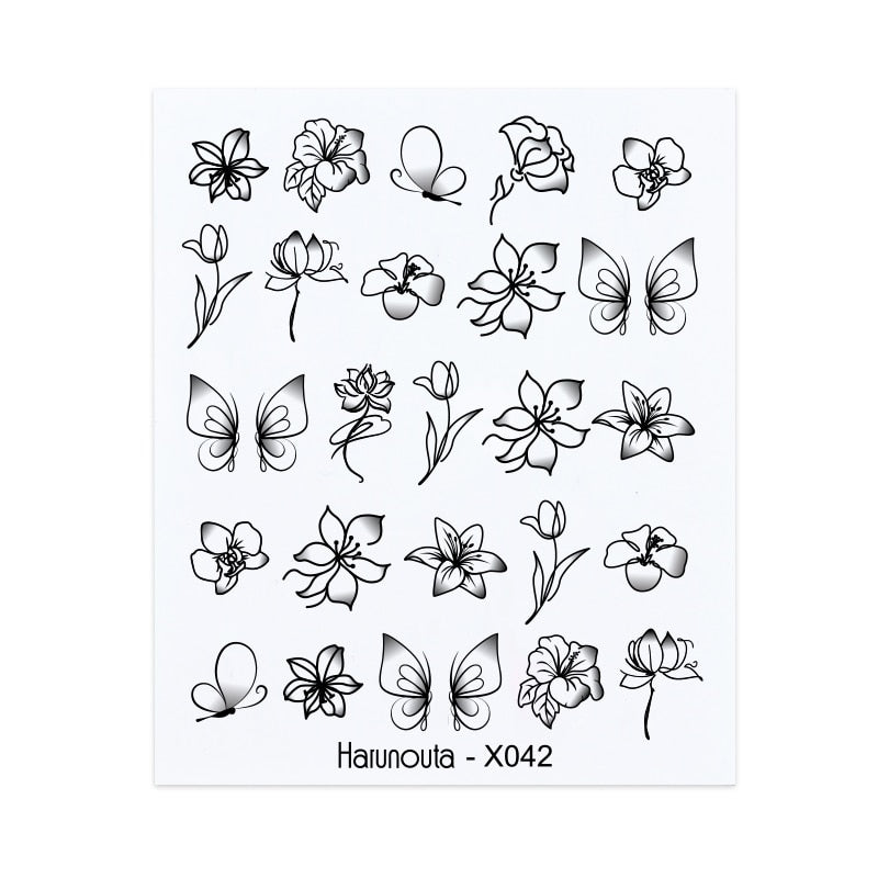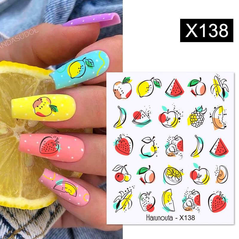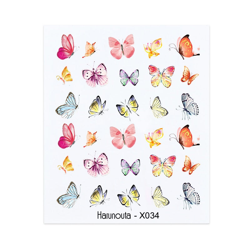 Harunouta Butterfly Flower Design Leaves Nail Water Decals Color Wave Geometric Line Charms Sliders Decoration Tips For Nail Art-Nail Inspo