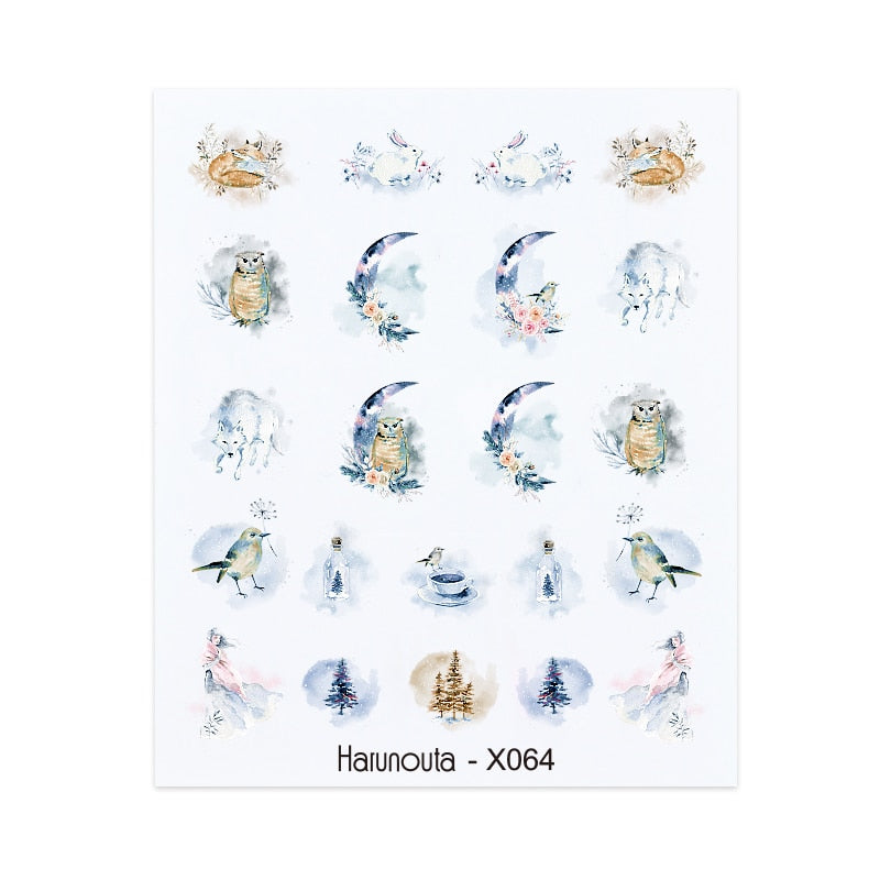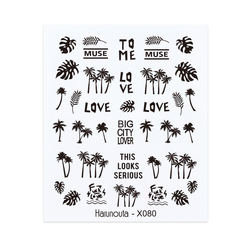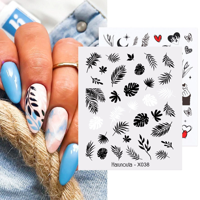 Harunouta Leaves Flowers Tree Water Decals Slider For Nails Spring Flower Butterfly Snake Design Stickers Nail Art Decoration-Nail Inspo
