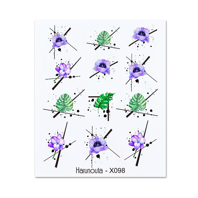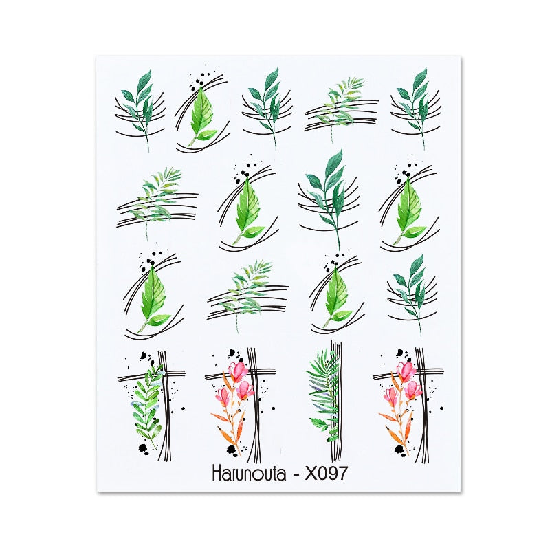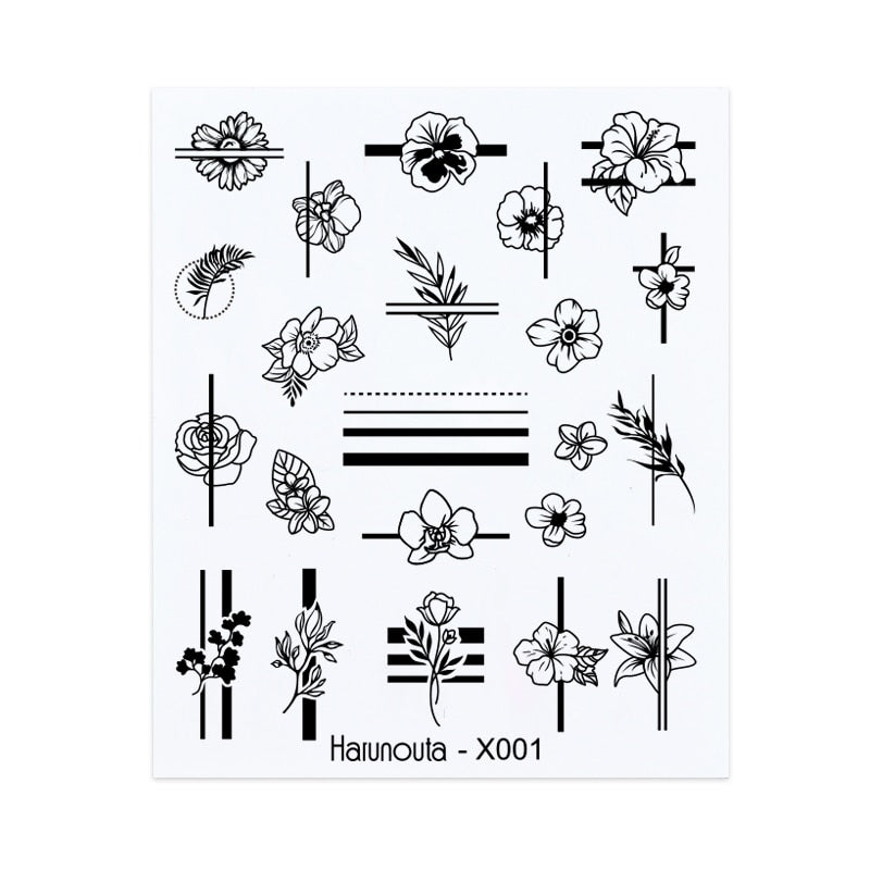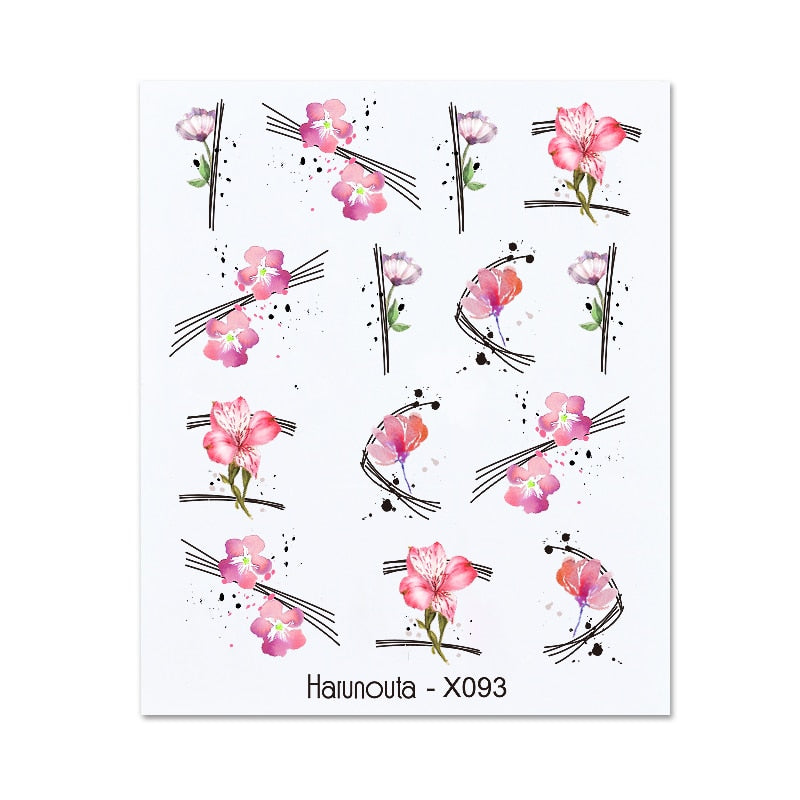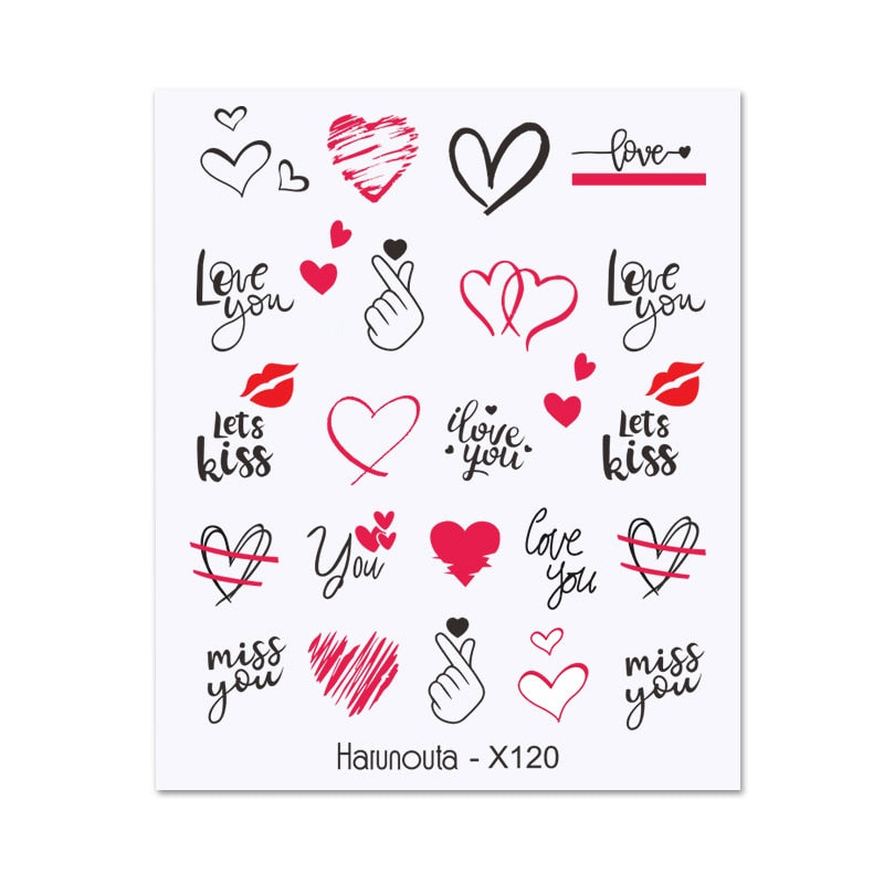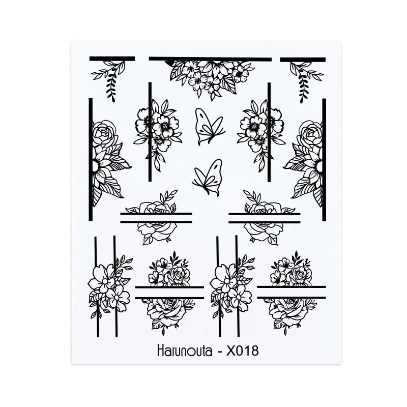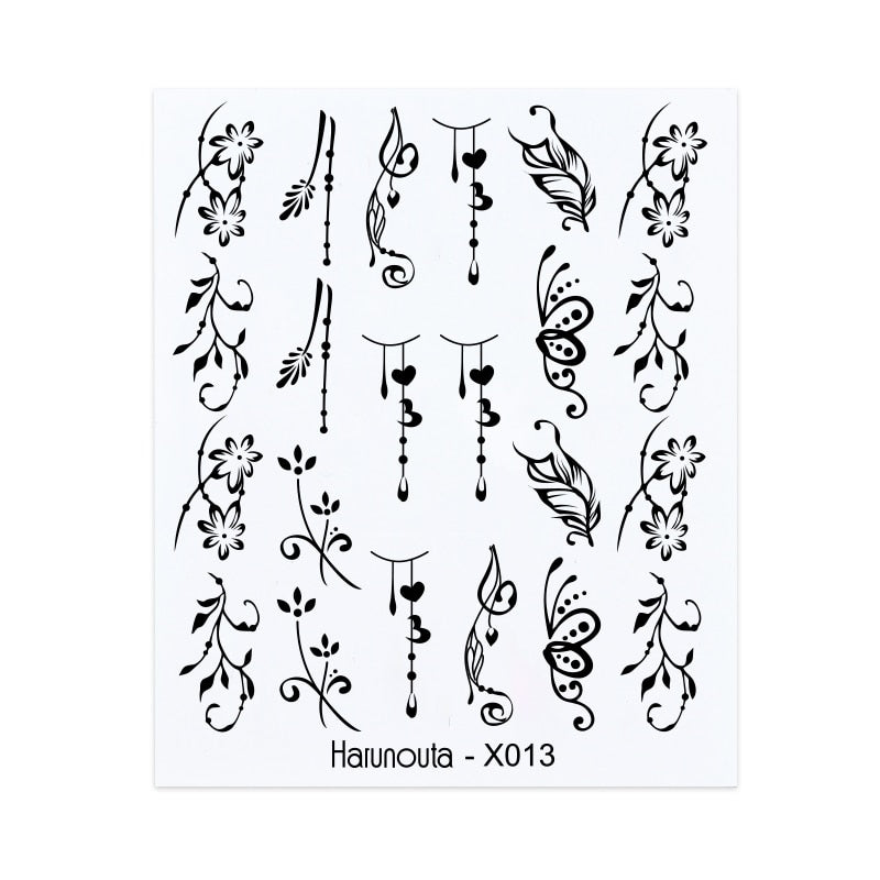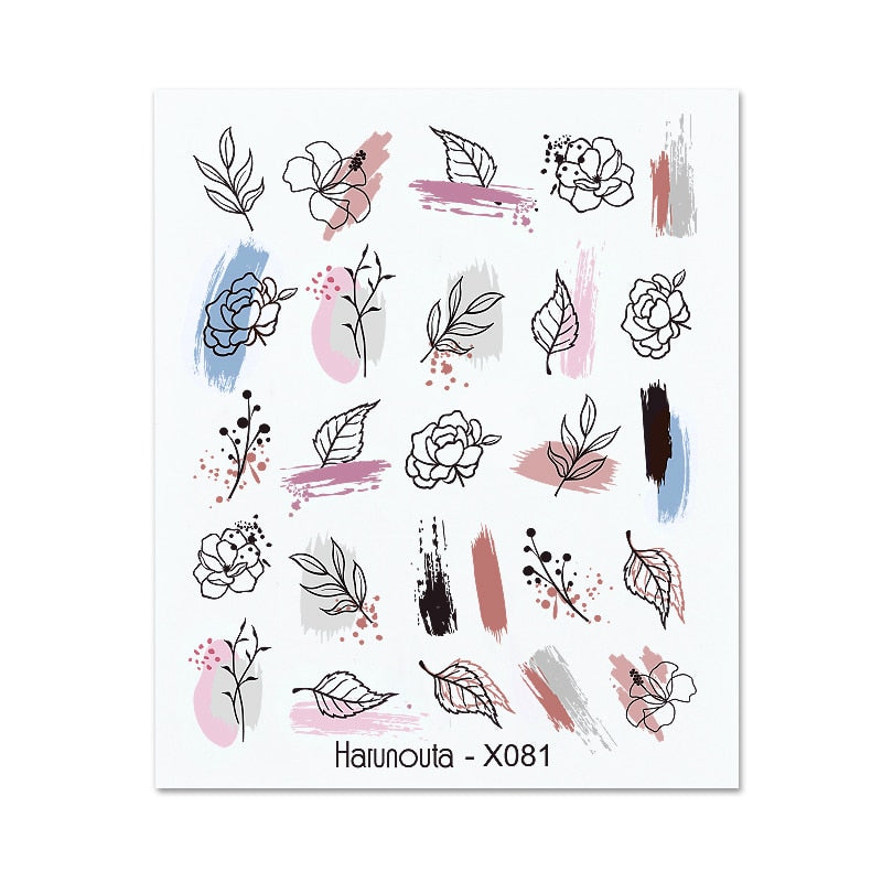 Harunouta Water Decals Ink Blooming Flower Leaves Transfer Nail Stickers Butterfly Love Heart Design Slider Watermark Decoration-Nail Inspo