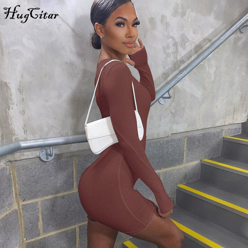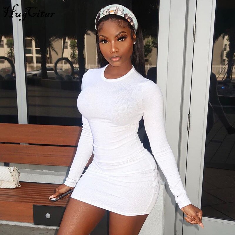Hugcitar 2020 Long Sleeve Bodycon Sexy Mini Dress Autumn Winter Women Fashion Streetwear Outfits Party Club Wear