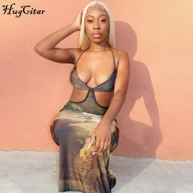 Hugcitar 2020 Sleeveless Vintage Backless Sexy Maxi Dress Autumn Winter Women Fashion Party Outfits Club Wear