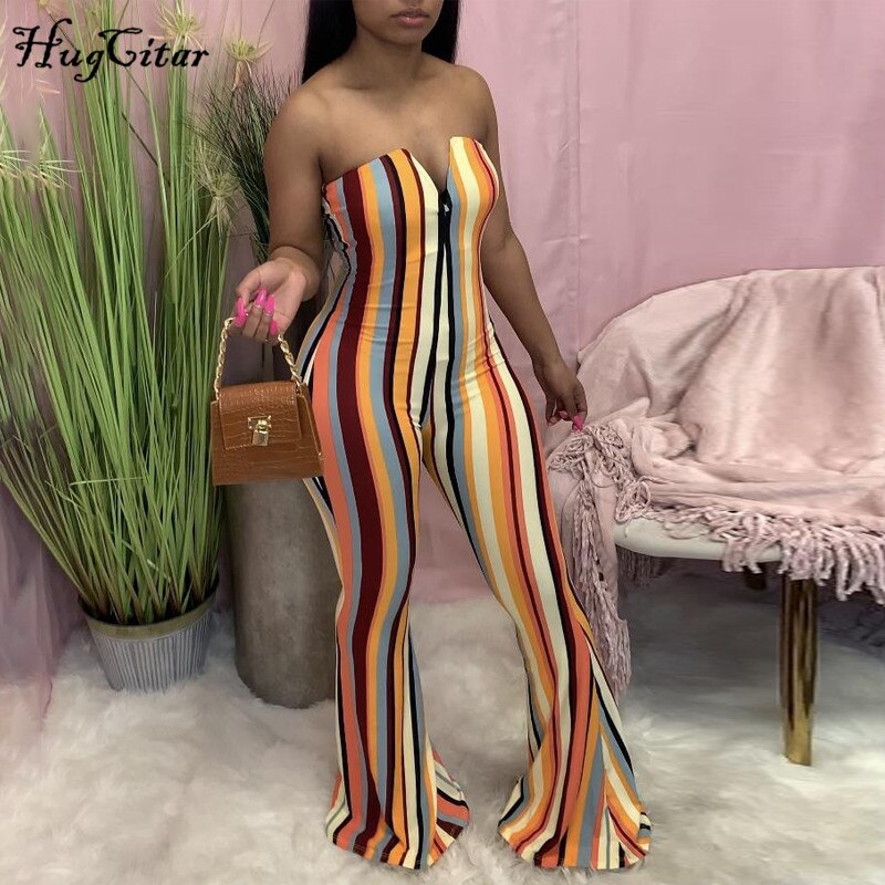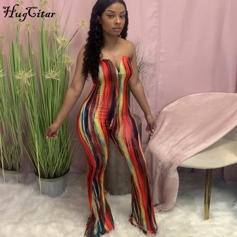 Hugcitar 2021 Sleeveless Multi-Color Backless Slash Neck Sexy Jumpsuit Summer Women Fashion Streetwear Outfits Club Romper