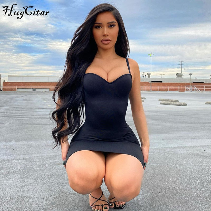 Hugcitar 2021 Sleeveless Sexy Bodycon Mini Dress Summer Women Fashion Streetwear Outfits Party Chic Clothing