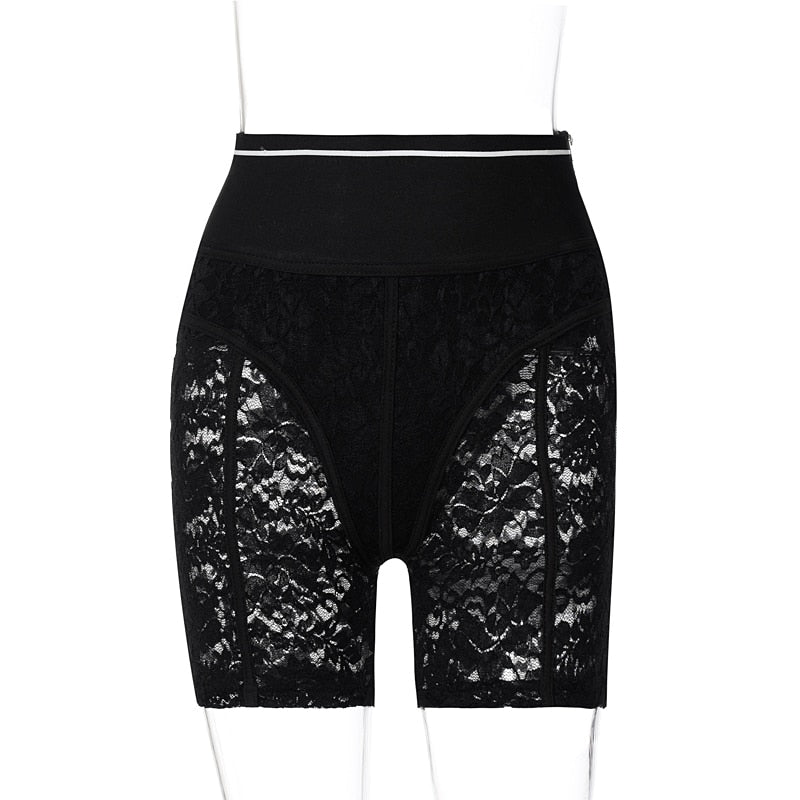 Hugcitar 2021 Solid Lace Zip Up Bodycon Leggings Short Pants Summer Women Sexy Streetwear Tracksuit