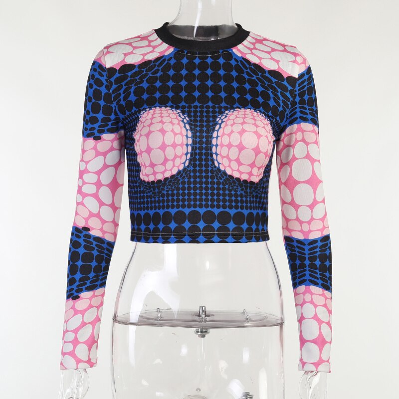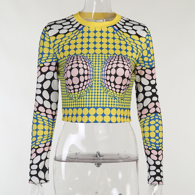 Hugcitar 2021 Women Autumn Long Sleeve 3D Printed Slim Fashion T Shirt Crop Tops Fall Female Clothing Streetwear