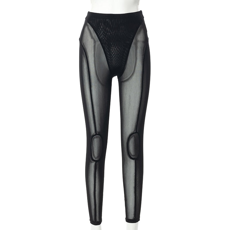 Hugcitar Bright Line Decoration Mesh See Through High Waist Slim Pants 2021 Autumn Women Fashion Streetwear Casual Sport Y2K