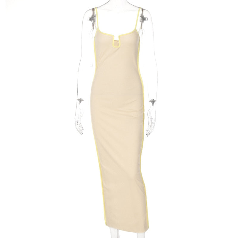 Hugcitar Bright Line Decoration Slip Backless U Neck Skinny Maxi Dress 2022 Spring Bodycon Fashion Y2K Streetwear Outfits