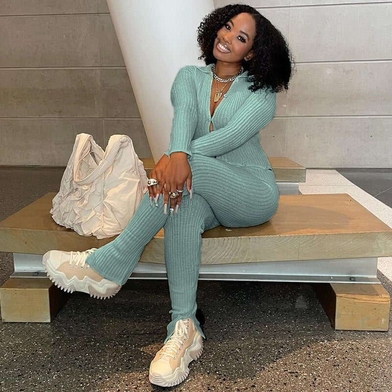 Hugcitar Knitting Long Sleeves  Loose Crop Top Leggings 2 Pieces Detachable Set 2021 Fall Winter Women Fashion Casual Streetwear