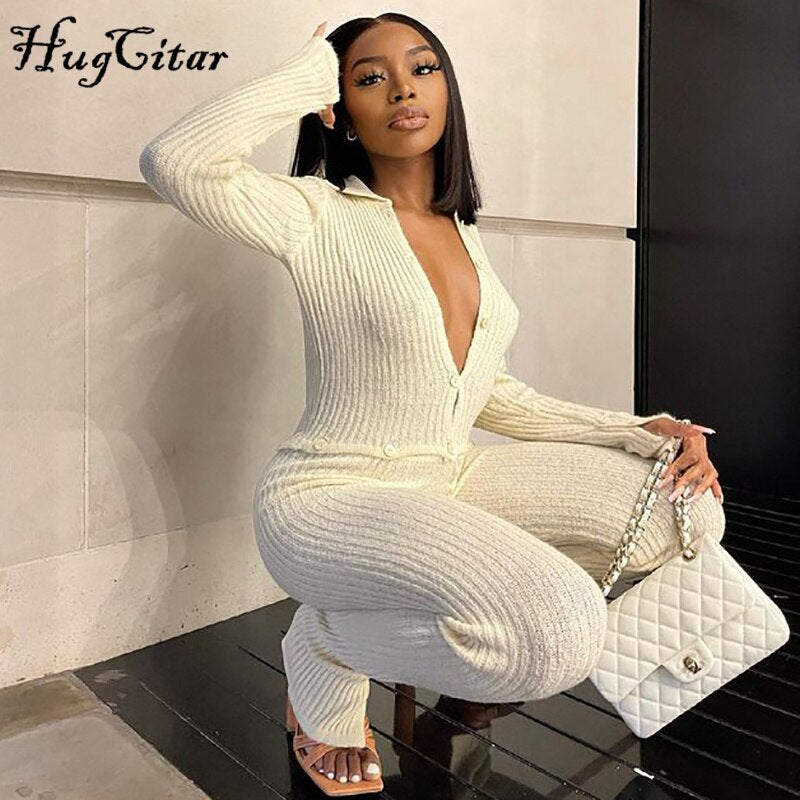 Hugcitar Knitting Long Sleeves Loose Crop Top Leggings 2 Pieces Detachable Set 2021 Fall Winter Women Fashion Casual Streetwear