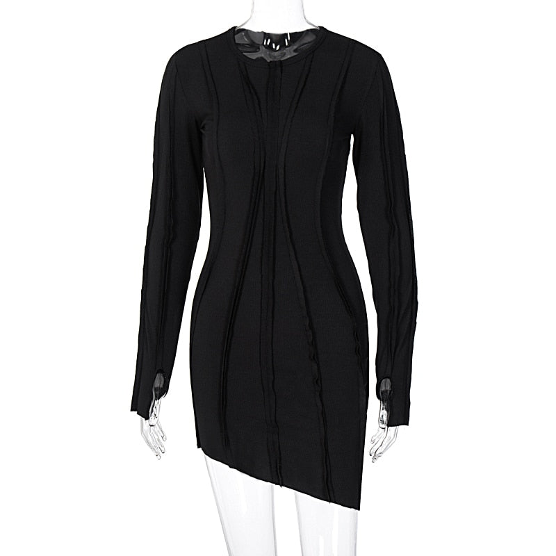 Hugcitar Long Sleeve Patchwork Sexy Mini Dress 2021 Autumn Winter Women Fashion Irregular Party Outfits