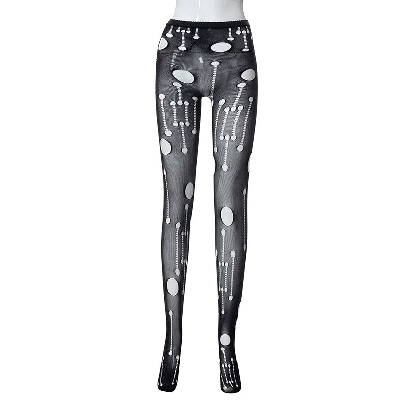 Hugcitar Mesh High Waist Cut Out See Through Foot Pants Leggings 2022 Summer Slim Sexy Beach Streetwear Club Outfits Y2K