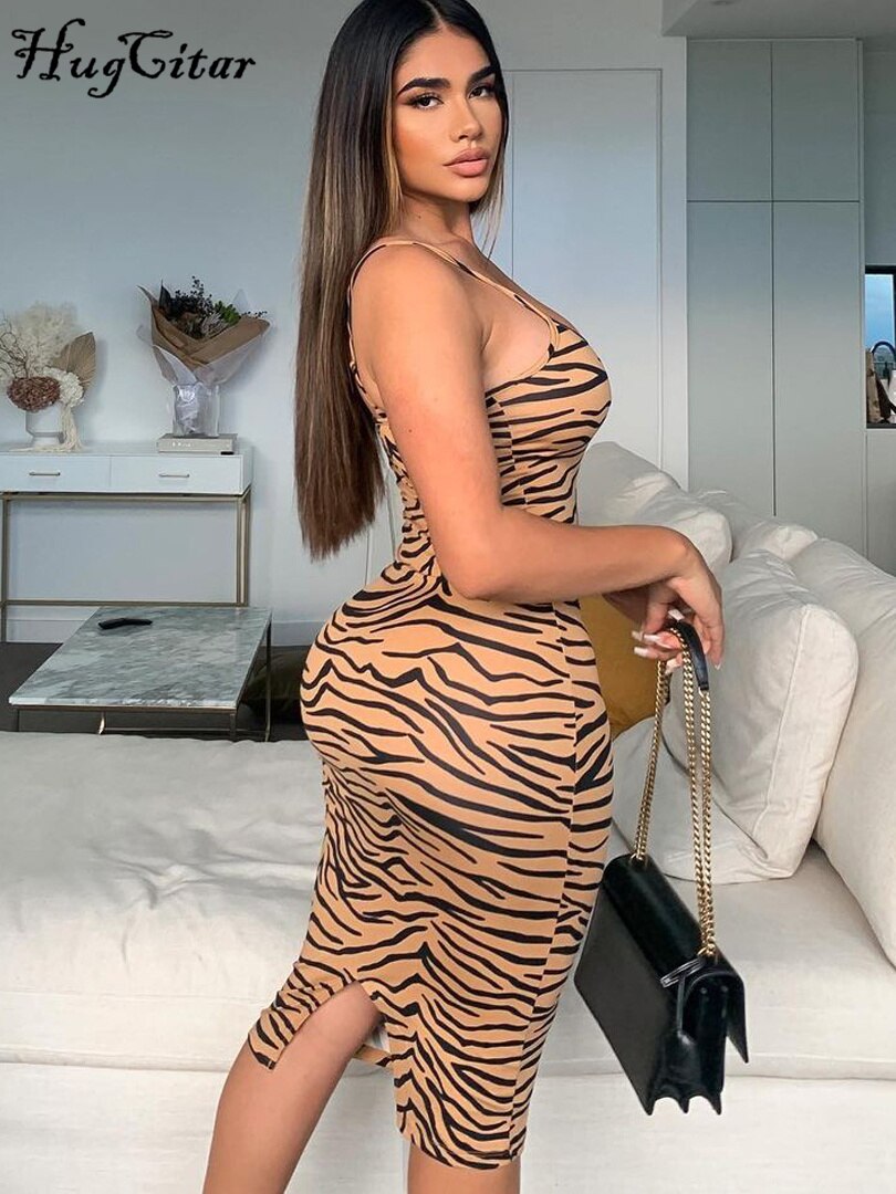 Hugcitar Print Slip Backless Slit Midi Dress 2021 Fall Women Fashion Sexy Club Outfits Vestidos Kleider Mit Schlitz Robe