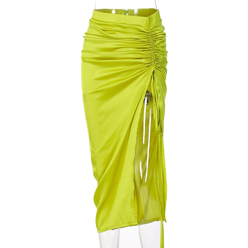 Hugcitar Pure Color High Waist Bandage Drawstrings Irregular Maxi Dress 2021 Summer Fall Winter Women Fashion Elegant Club Y2K