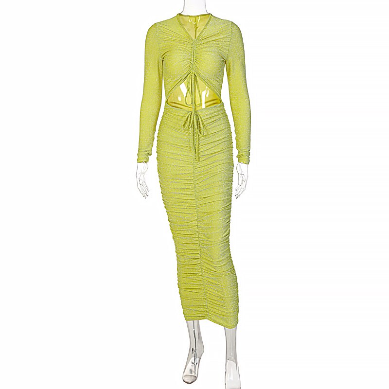 Hugcitar Shine Bling Rudhed Long Sleeves Hollow Our Strings Midi Dress 2022 Fashion Evening Party Women Elegant Streetwear Y2K