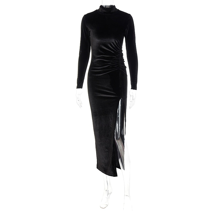 Hugcitar Solid Satin Long Sleeves TurtleNeck Draped Maxi Dress 2021 Autumn Women Fashion Sexy Streetwear Casual Party Club Robe