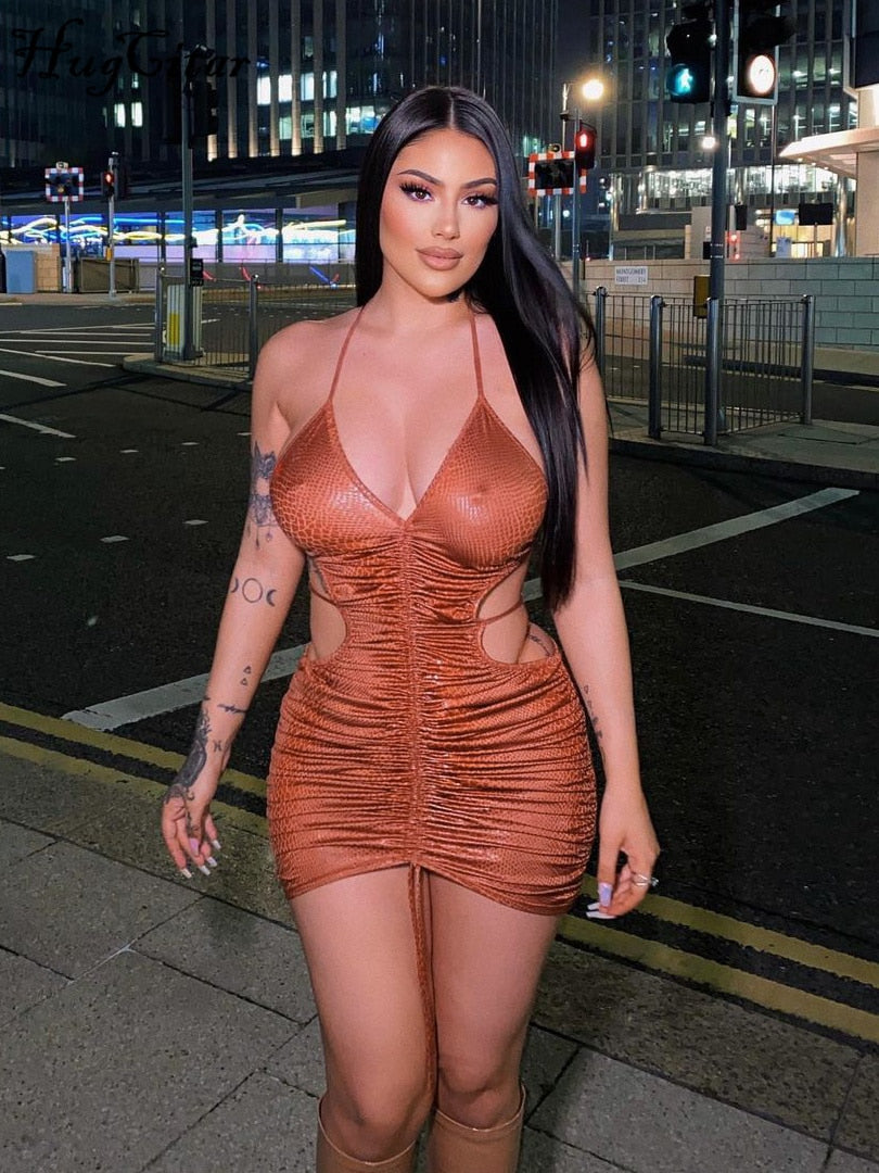 Hugcitar Solid Satin Sleeveless Backless Halter Slim Hollow Out Pleated Bodycon Sexy Mini Dress 2021 Fall Women Elegant Party