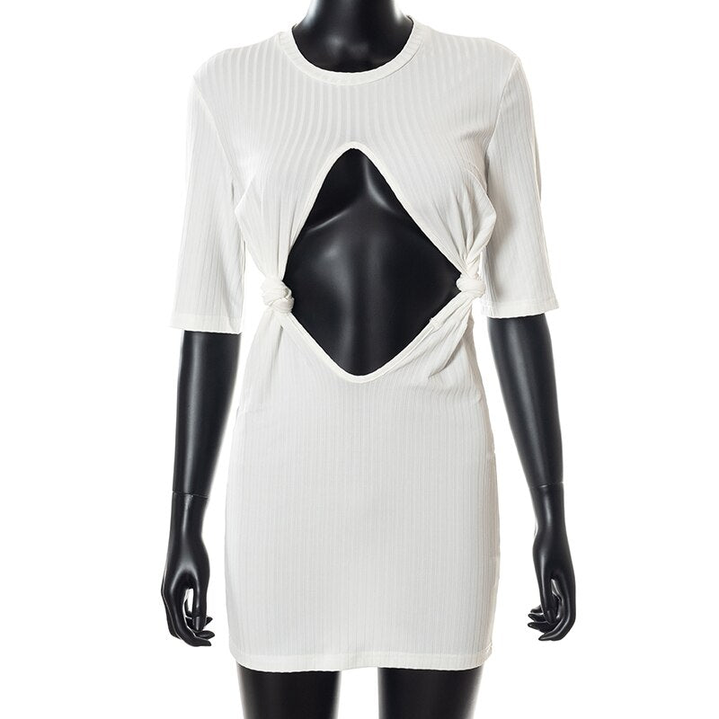 Hugcitar Solid Short Sleeve Hollow Out Backless Bandage Mini Sexy Dress 2021 Summer Autumn Women Fashion Outfits Party Club Y2K