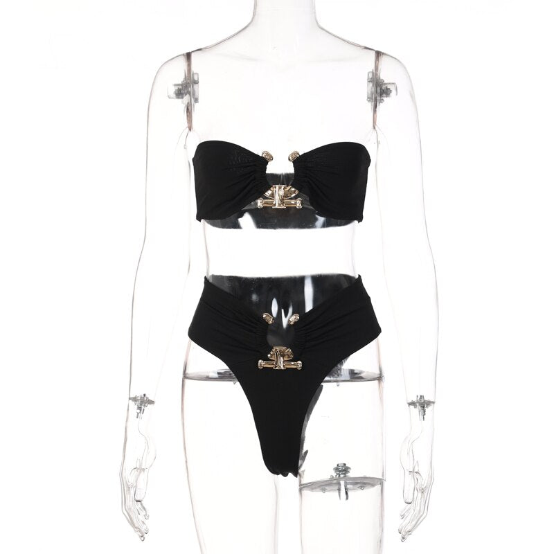Hugcitar Velvet Metal Decoration Sexy Strapless Crop Tube Top Shorts 2 Pcs Suits 2022 Summer Women Fashion Streetwear Beach Club
