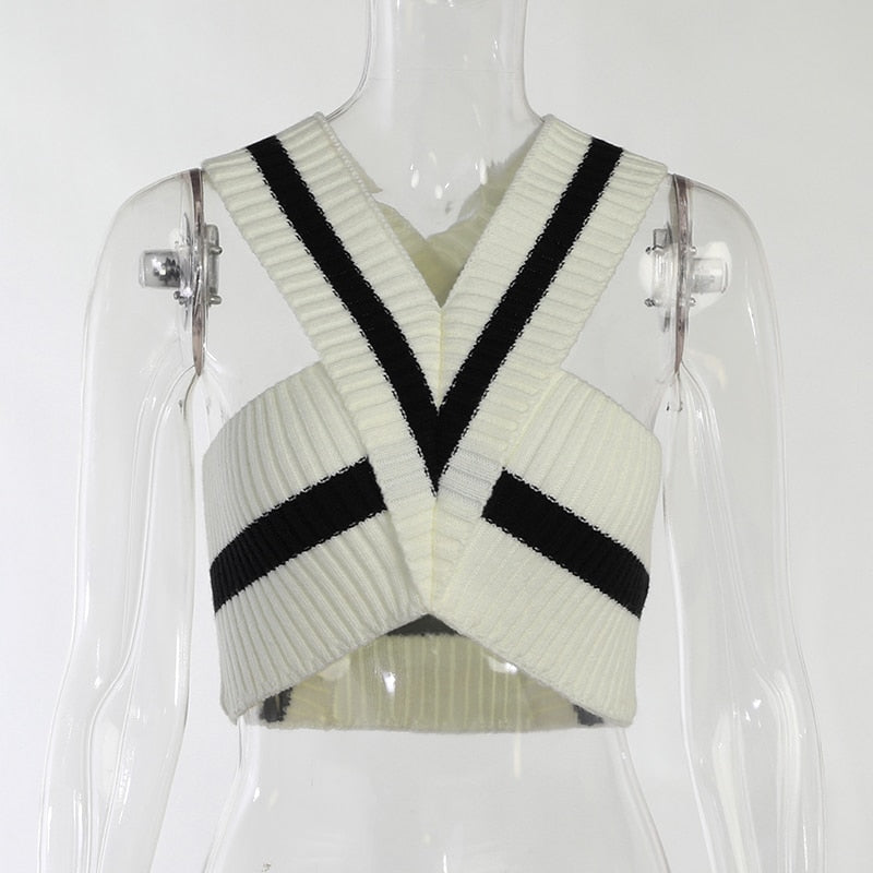 Hugcitar Women Halter Sleeveless Patchwork Sexy Tube Top Club Beach Body 2022 Summer Holiday Revealing
