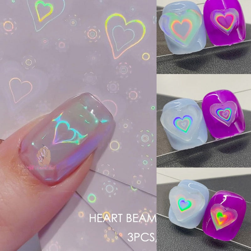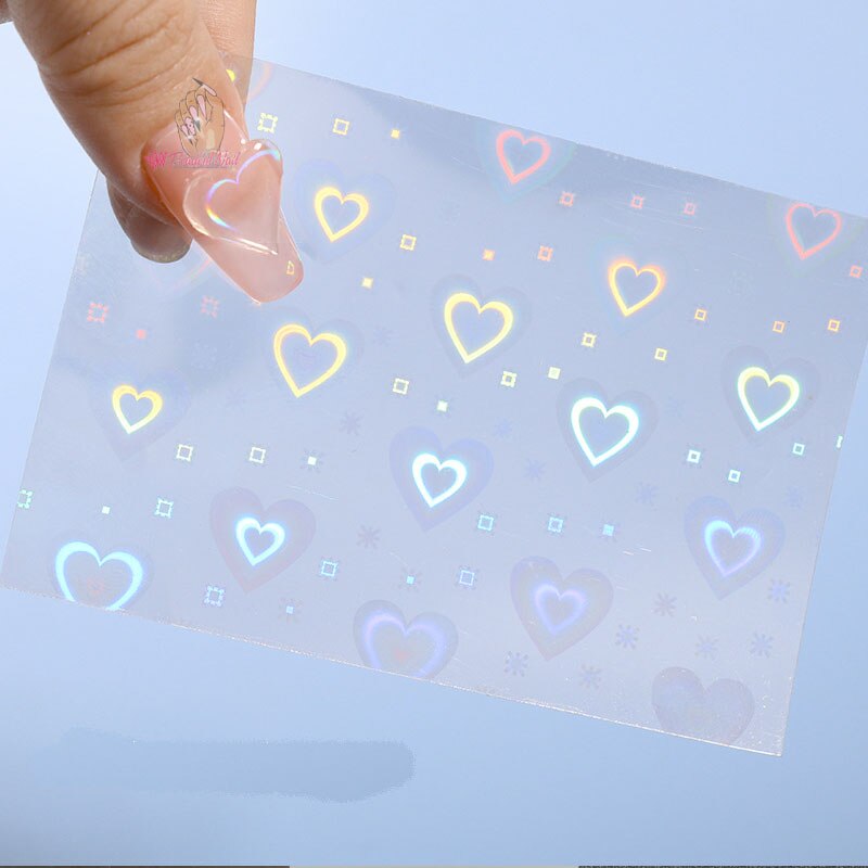 Japanese Holo Nail Art Stickers Holographic Heart Nail Decals Self-Adhesive Korean Trend Transfer Decal Foil Decoration Manicure-Nail Inspo