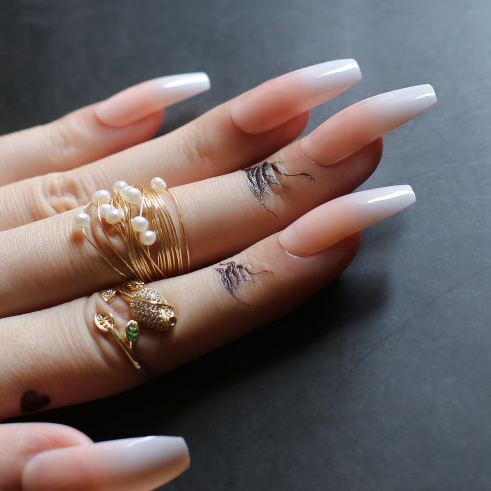jelly gel ombre Coffin Acrylic nails nude salon 24pcs fake nails ballet UV glossy reuse trapezoid Baby Boomer yellow ombre-Nail Inspo