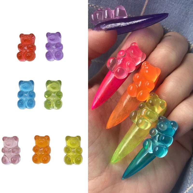Jelly Gummy Bear Nails Luxury 3D Nail Rhinestones Decoration for Kawaii Press On Tips Manicure Accessories-Nail Inspo